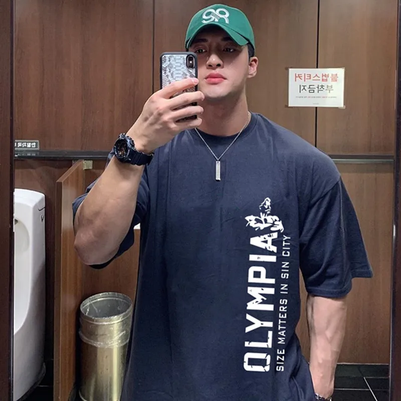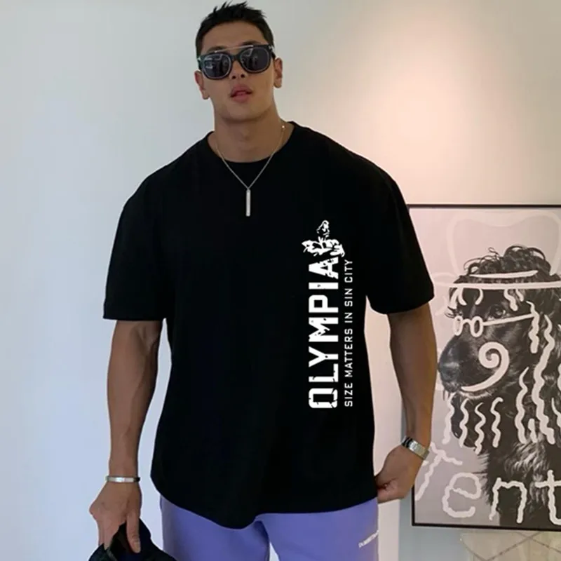 Мужская хлопковая свободная футболка, Новинка лета 2020, рубашки для спортзала, фитнеса, бодибилдинга, мужские Модные повседневные футболки с коротким рукавом, топ, одежда