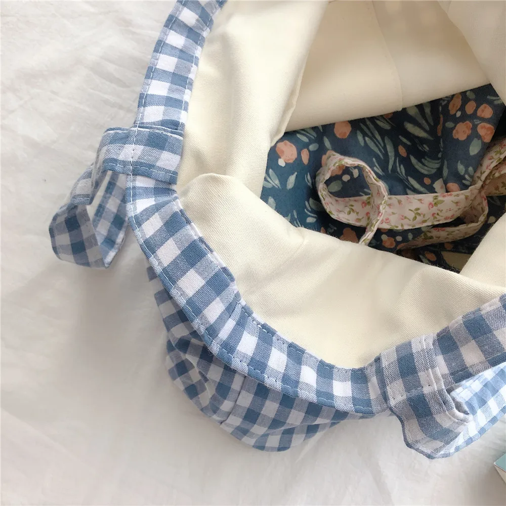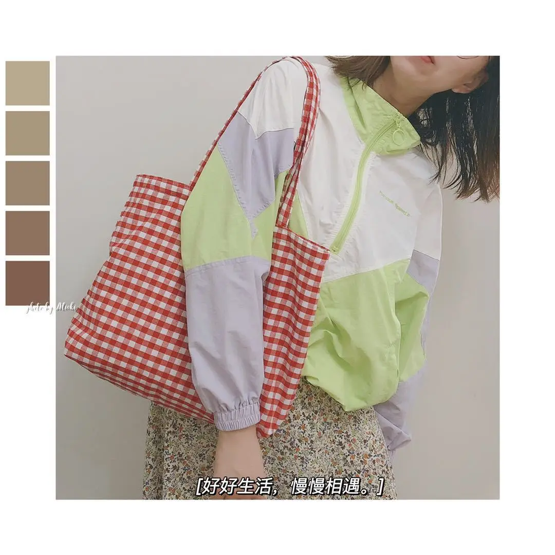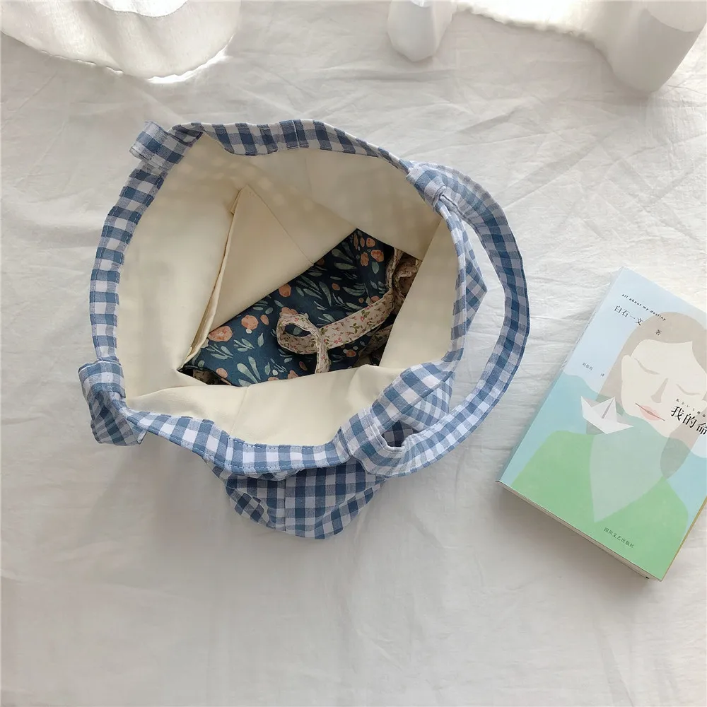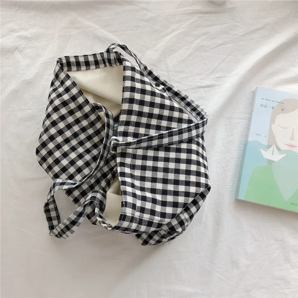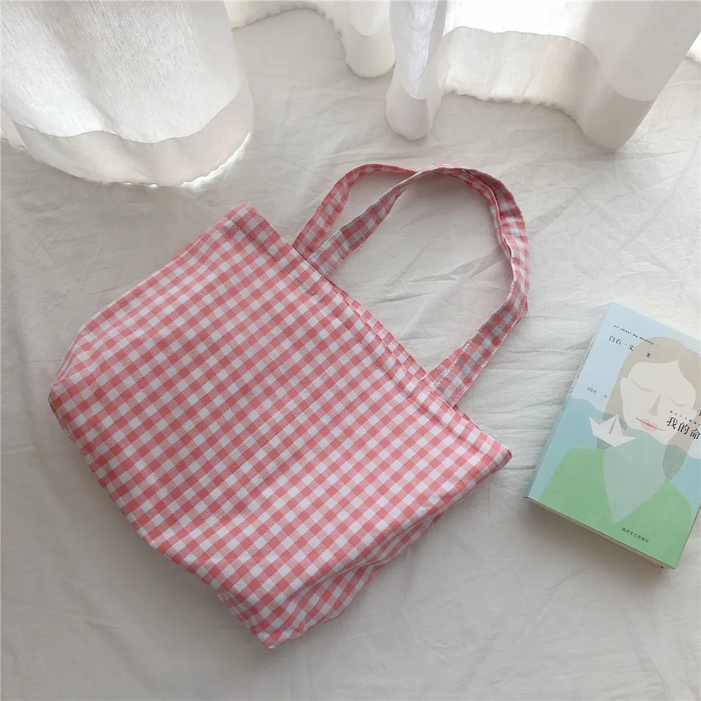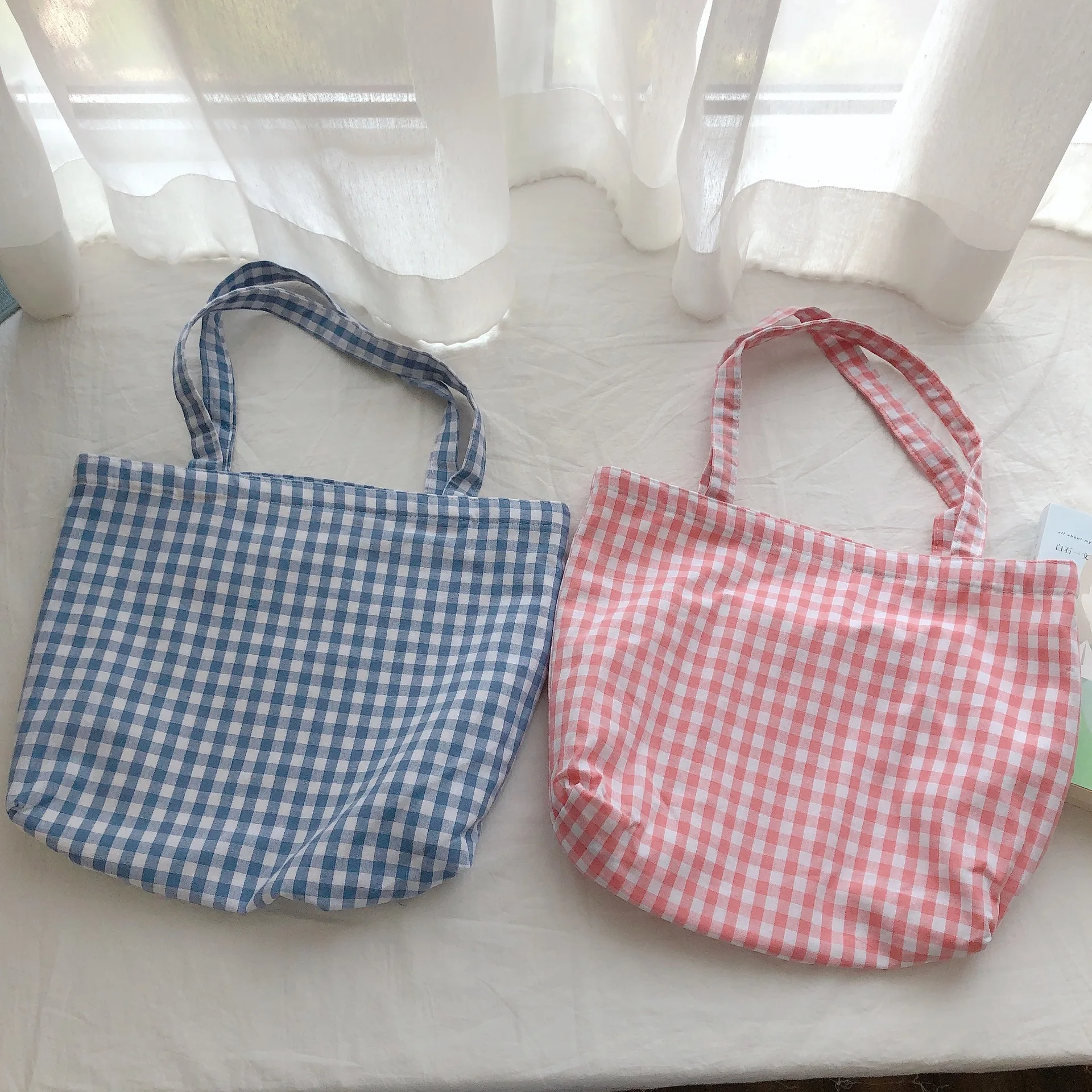 Модная Повседневная хлопковая клетчатая сумка на плечо, экологически прочная тканевая многоразовая сумка для покупок с короткими ручками для женщин, дорожная сумка