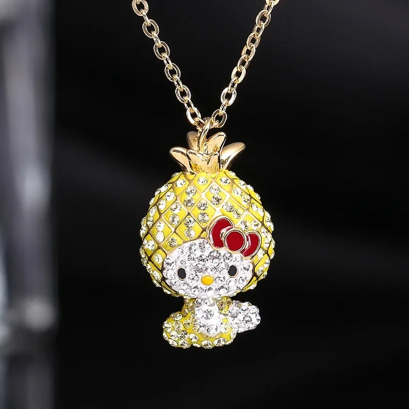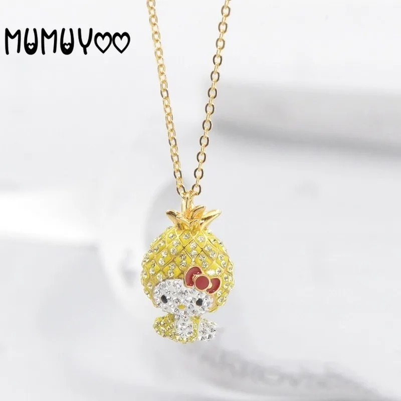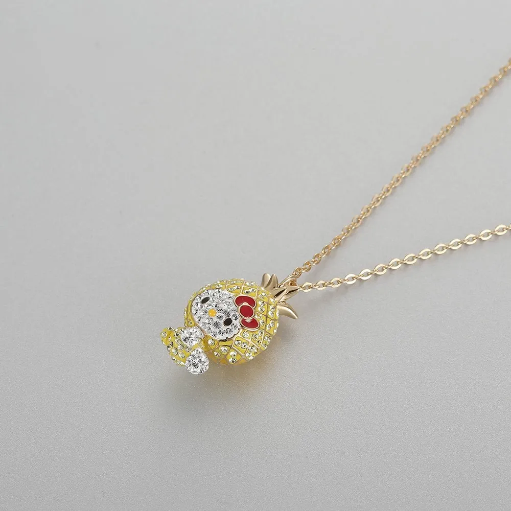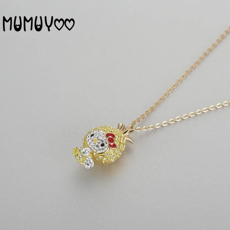 Модные ювелирные изделия высокого качества, милое и милое ожерелье с желтым ананасом и кошкой, женское ожерелье с кристаллами ананаса, КТ, кошка, цепочка до ключиц для женщин