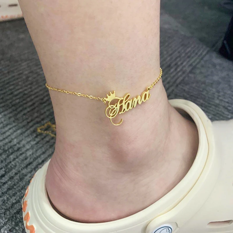 Персонализированный браслет на ногу с короной для женщин, именной браслет на ногу с именем на заказ, женский очаровательный браслет на ногу в романтическом стиле из нержавеющей стали, ювелирные изделия, лучший подарок для любителей