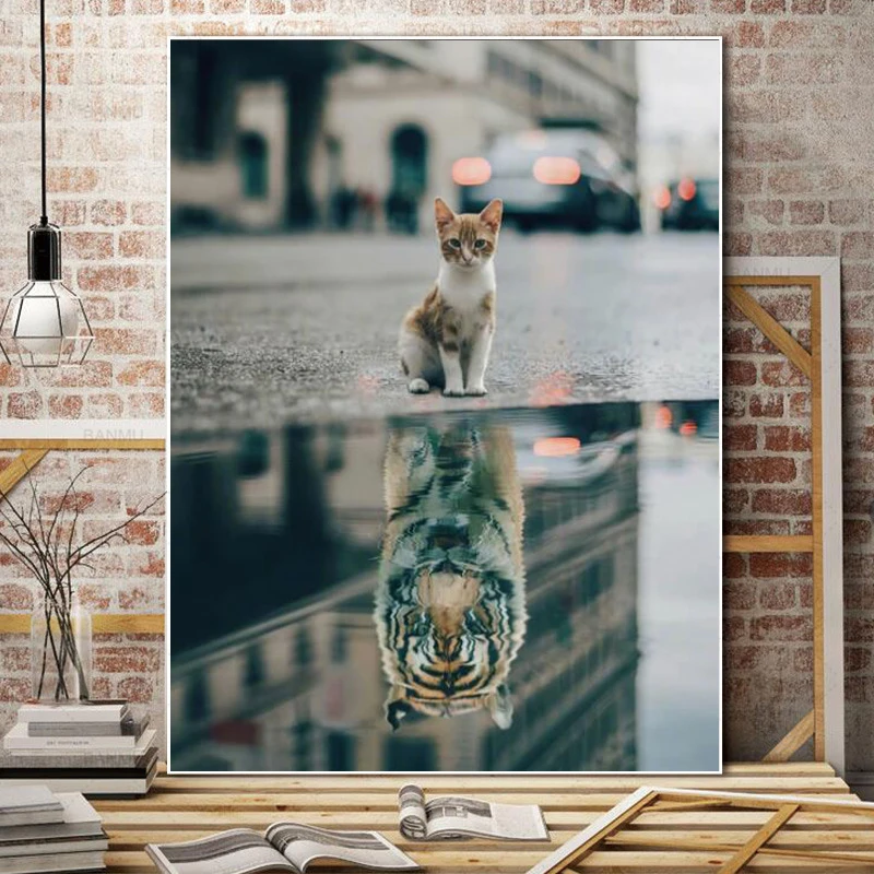 Картина из холста с изображением Льва, кота и тигра в сердце, совре...