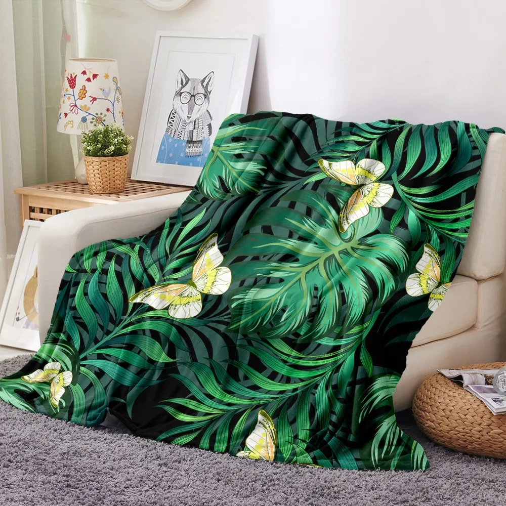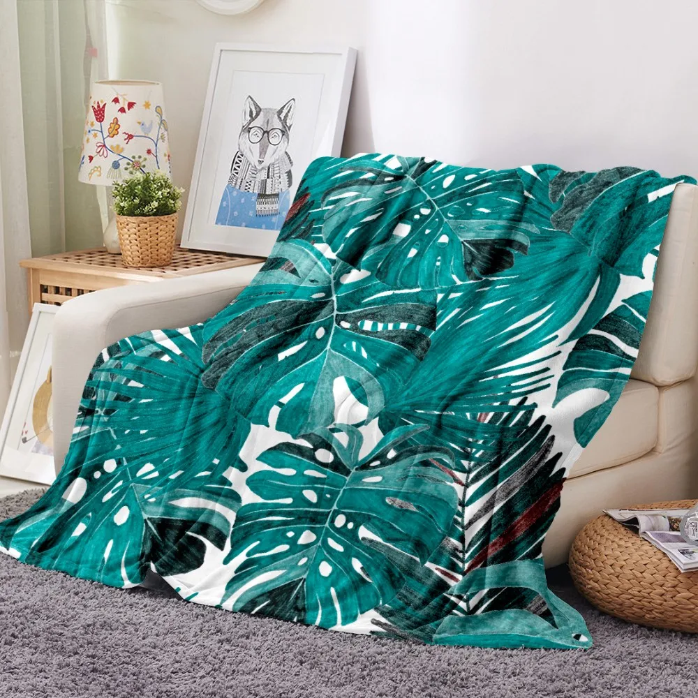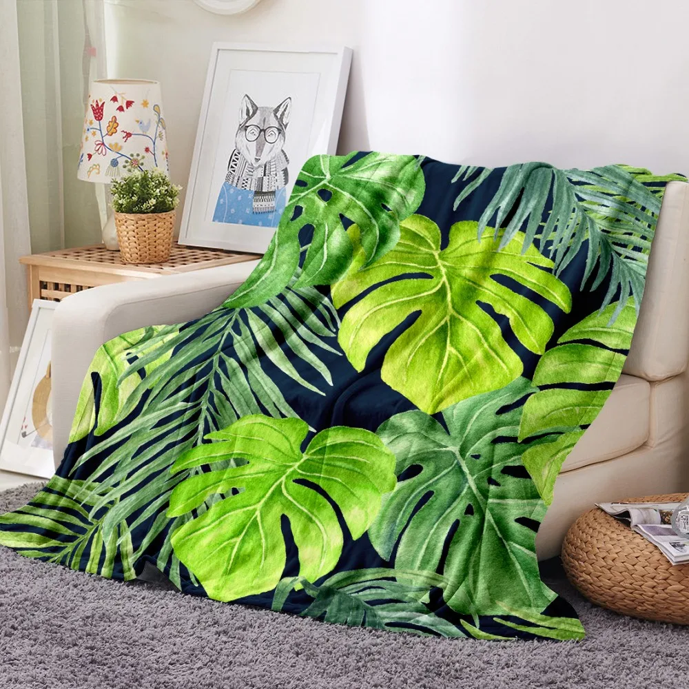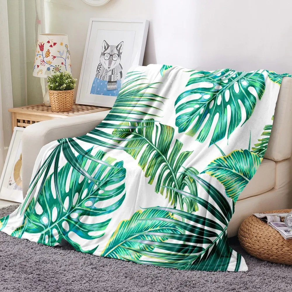 Одеяло с принтом тропических листьев, тропических растений, зеленое, для офиса, дома, автомобиля, мягкое фланелевое одеяло, теплое постельное белье, диван, покрывало на кровать