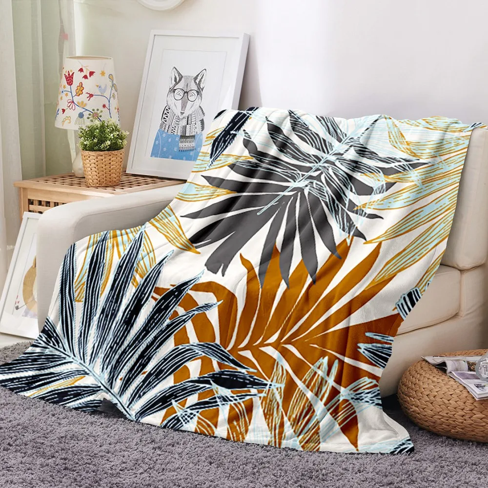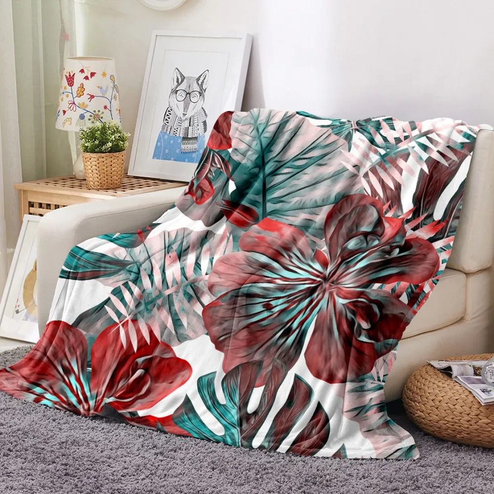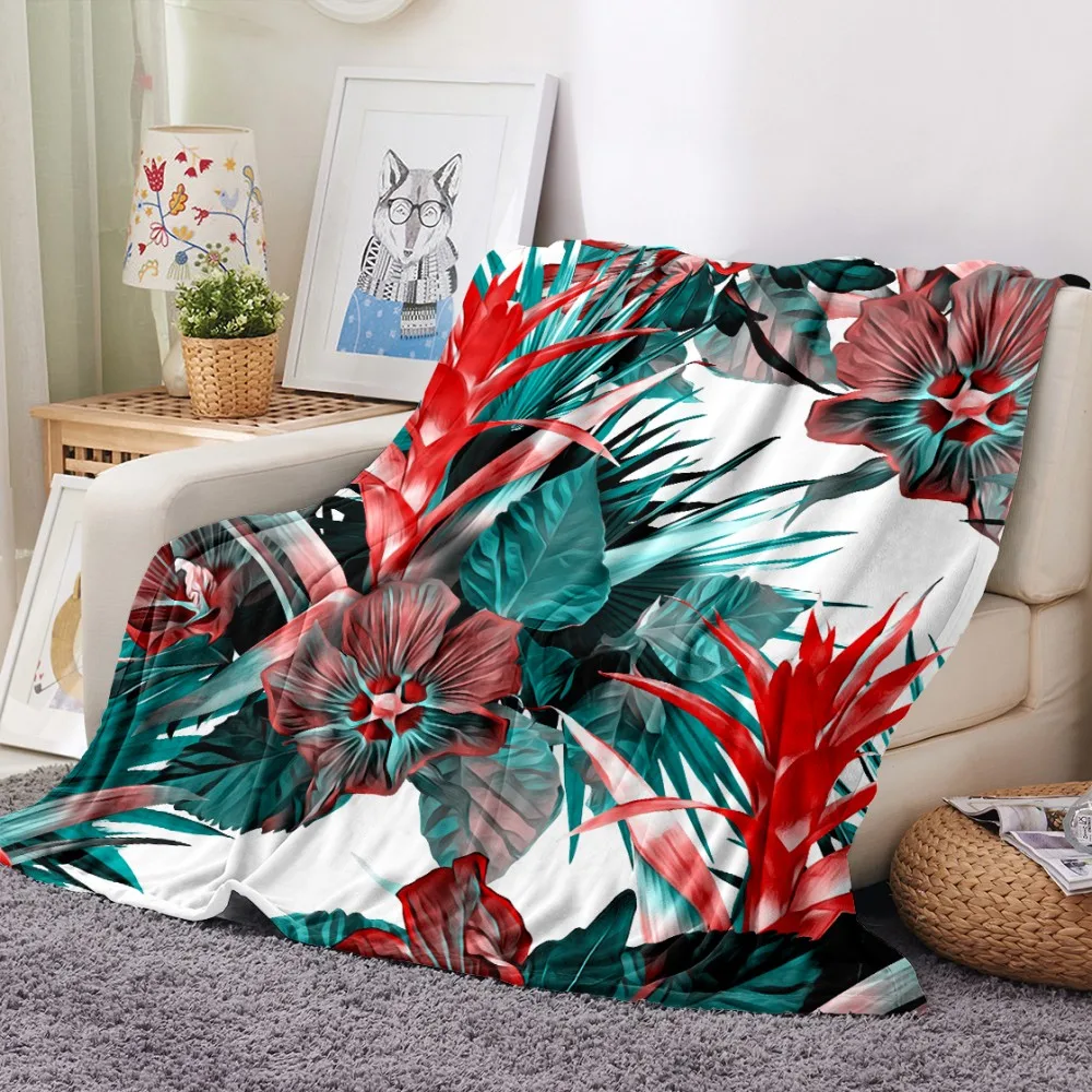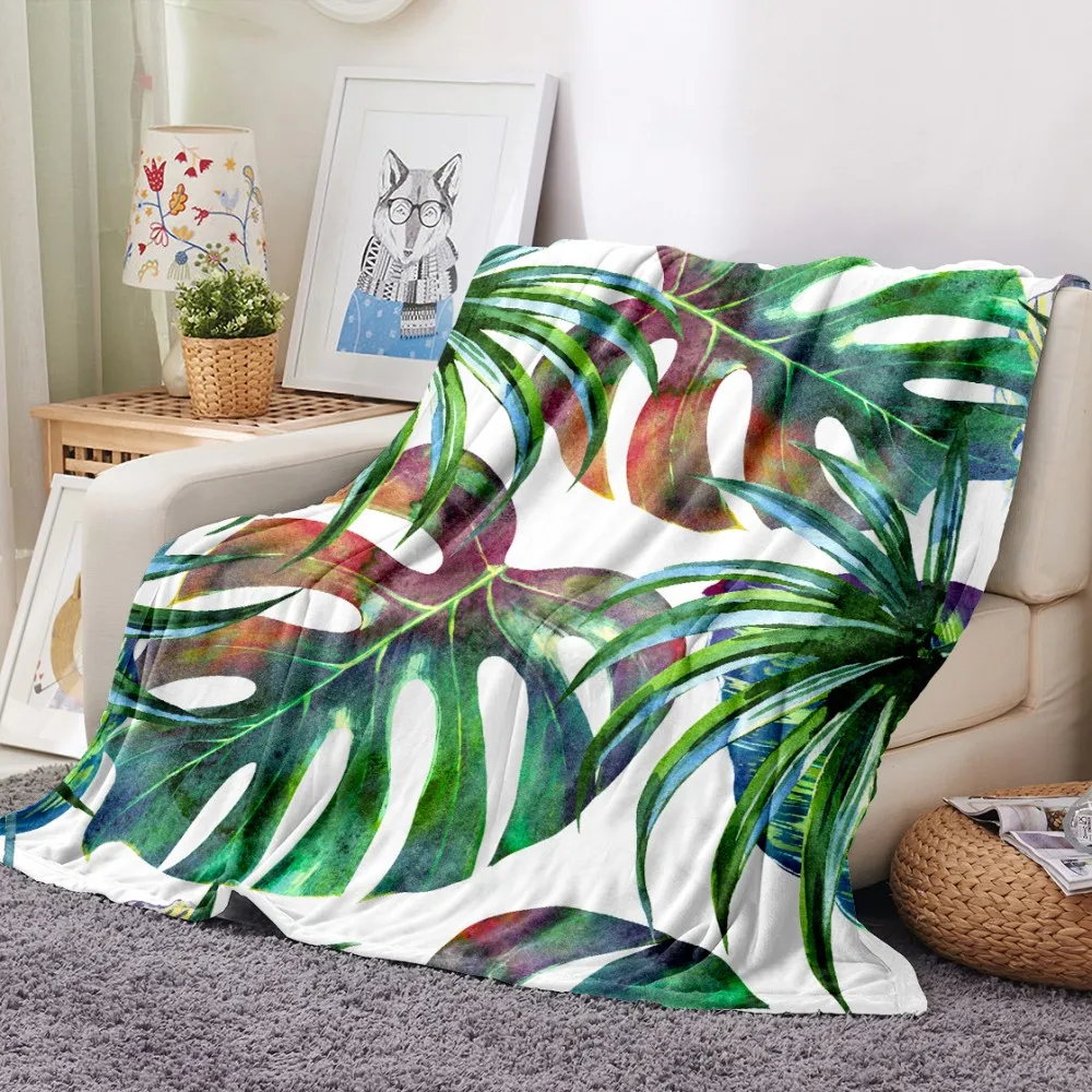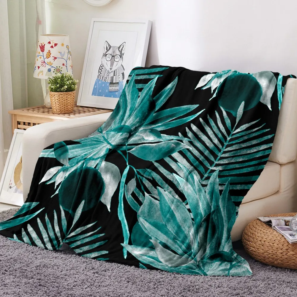 Одеяло с принтом тропических листьев, тропических растений, зеленое, для офиса, дома, автомобиля, мягкое фланелевое одеяло, теплое постельное белье, диван, покрывало на кровать