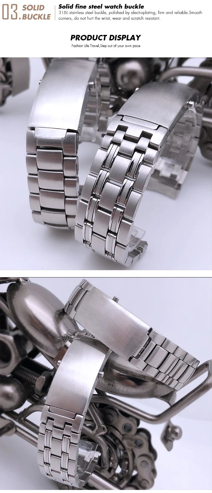 Браслет тяжелого веса, прочно изготовлен. Очень привлекательная отделка. Поставляется с пружинными стержнями и элементарным инструментом.