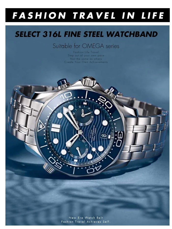 Браслет мужской из нержавеющей стали, серебристый, 20 мм, 316L, для часов Omega New Seamaster 300