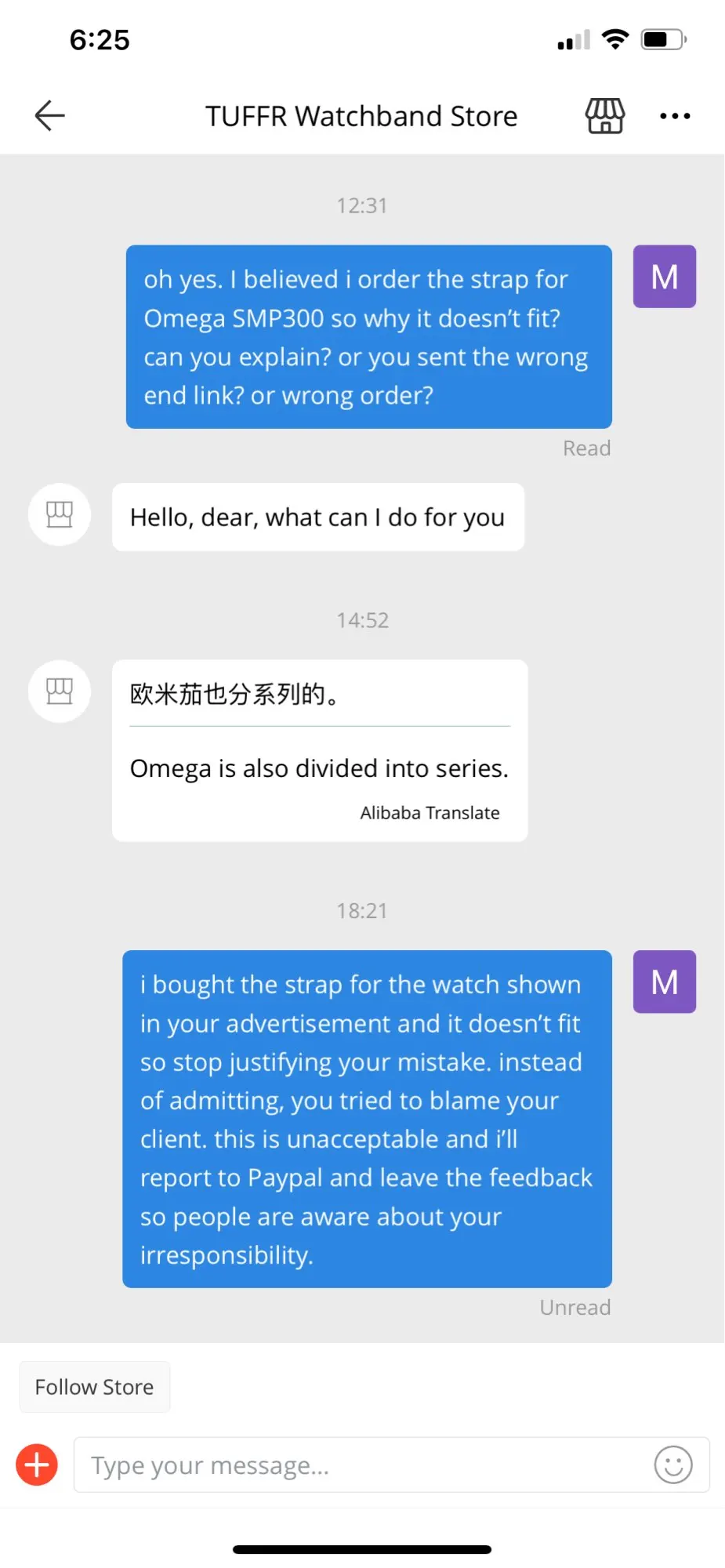 Не покупайте этот ремешок для вашего Omega SMP300. Он совсем не подходит. Продавец безответственен и старается винить меня в их проблеме, которая хрома. Отверстия в концевой связи блокируют отверстия в часах. Так что Экономьте свои деньги и держитесь подальше от них. Очень разочарован и разочарован.