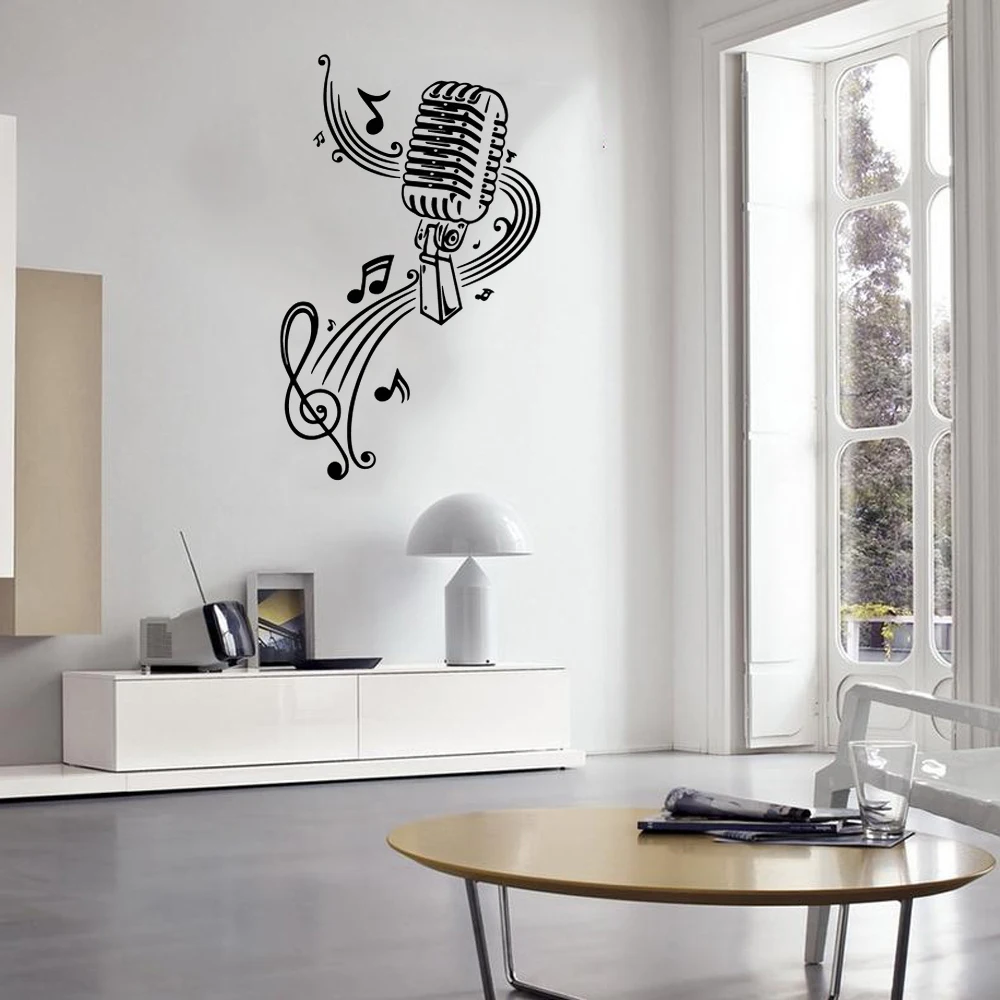 Художественная Наклейка на стену микрофон наклейка в музыкальном стиле для спальни, гостиной, декоративная наклейка, настенная наклейка, домашний декор, виниловая ov72