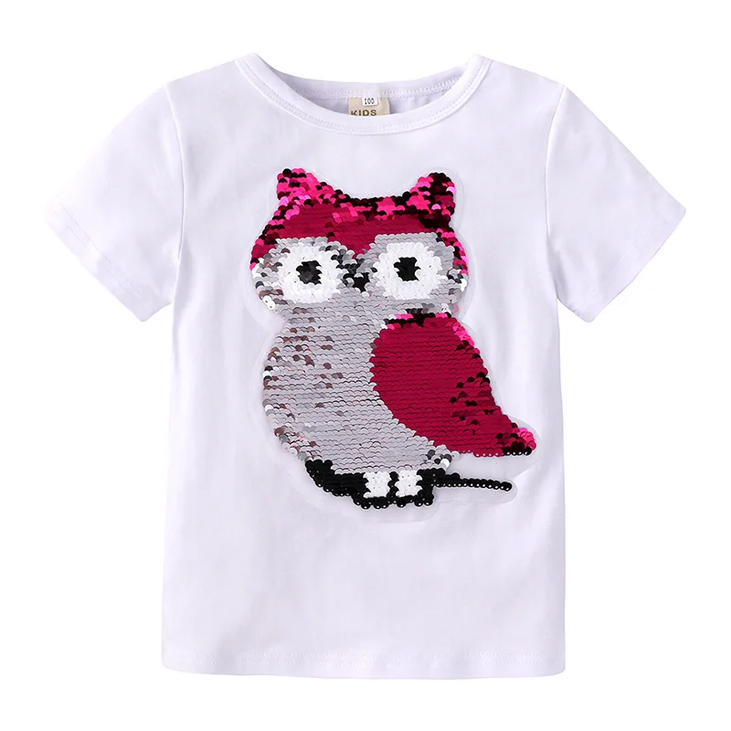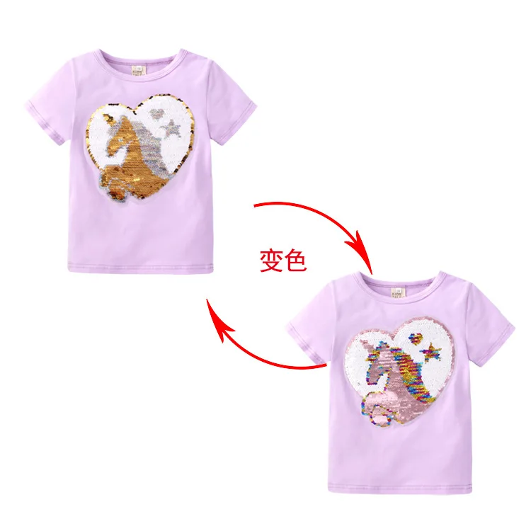 Футболка для девочек 2-8 лет, с короткими рукавами и блестками