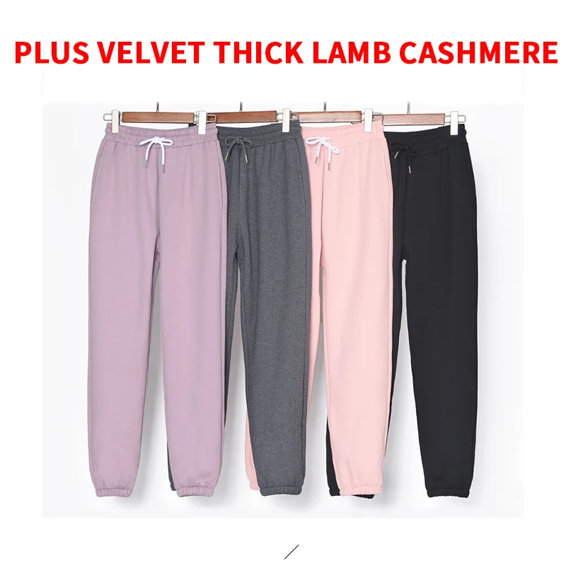 Женские спортивные брюки на шнуровке, утолщенные теплые спортивные ...