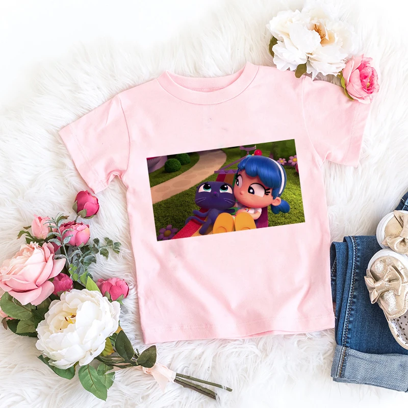 Действительно красивая футболка с хорошим принтом. Размер 6T подходит для моей дочери ростом 110 см. Ткань синтетическая, но мягкая.