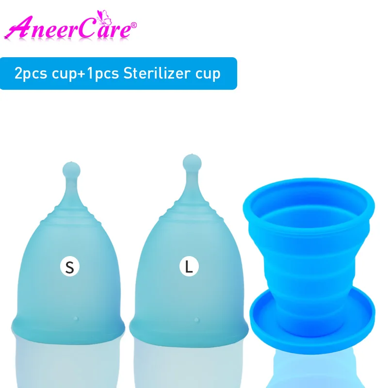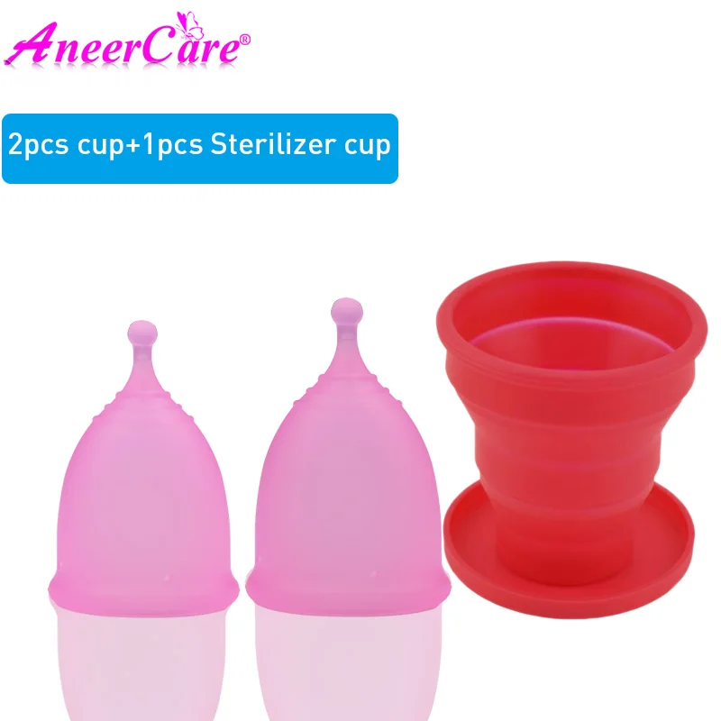 2 шт. женственная гигиена менструальный период чашек многоразовые вагинальные и складные стерилизатор с женщин медицинского класса силикона Aneercare