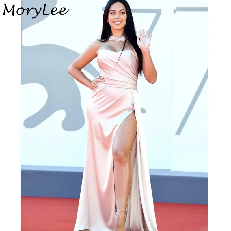 Платья для выпускного вечера, милое шелковое атласное платье без рукавов с разрезом сбоку, платье для выпускного вечера с молнией сзади, vestidos de fiesta de noche