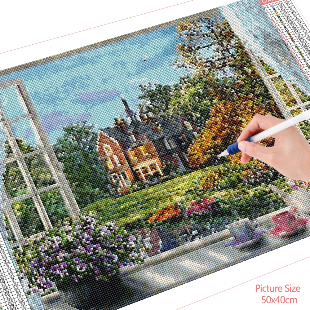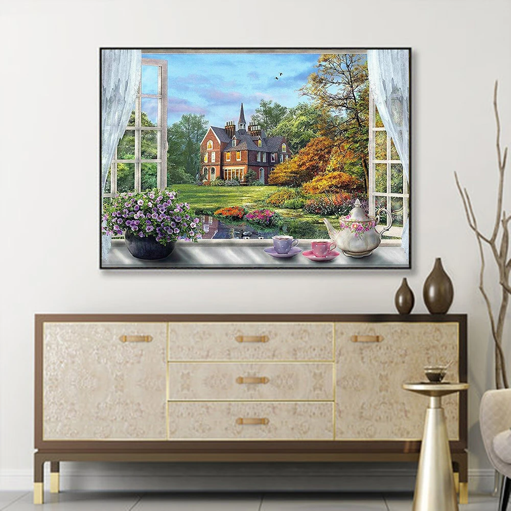 Алмазная живопись HUACAN, ландшафт, окно, фотообои, вышивка крестиком, домашний декор, настенная наклейка