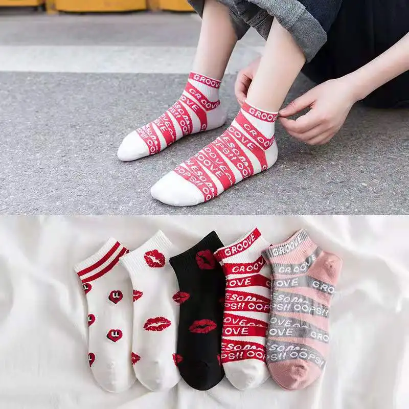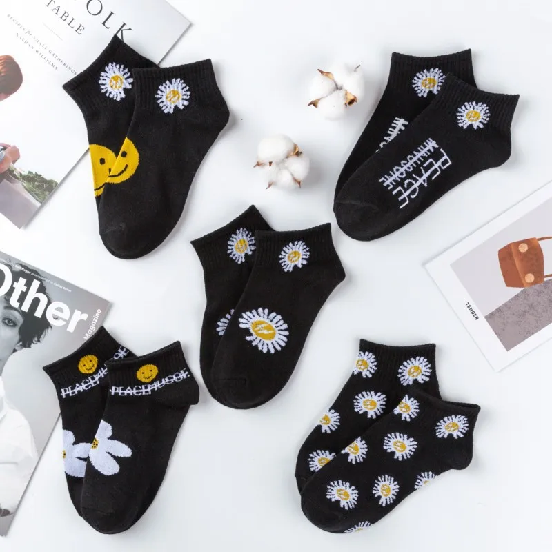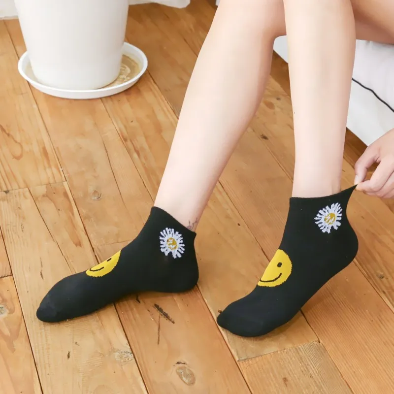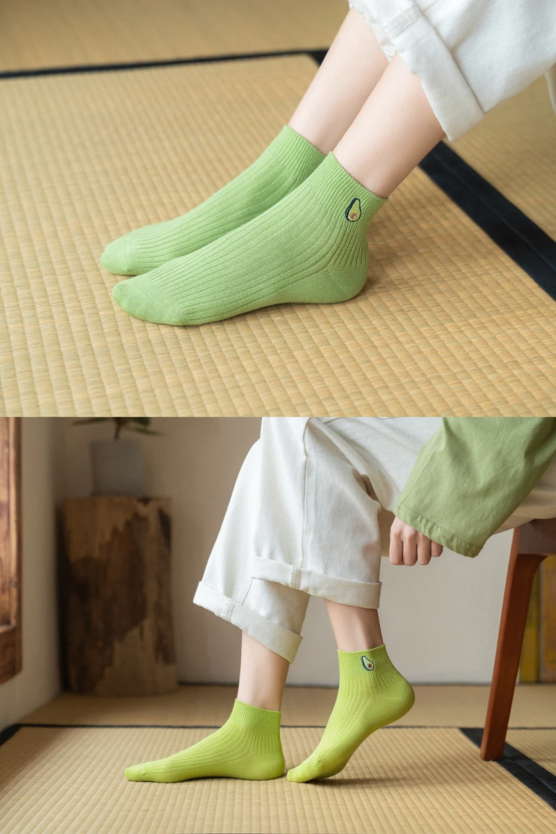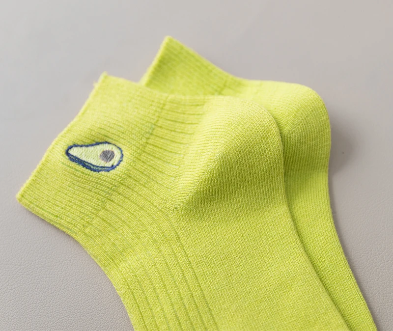 Носки женские летние хлопковые с вышивкой, милые повседневные до щиколотки для девушек, с авокадо, 5 пар