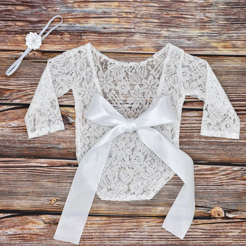 Реквизит для фотосессии новорожденных; Одежда с бантом для маленьких девочек; Кружевной комбинезон принцессы; Одежда для студийной фотосессии с повязкой на голову с цветами