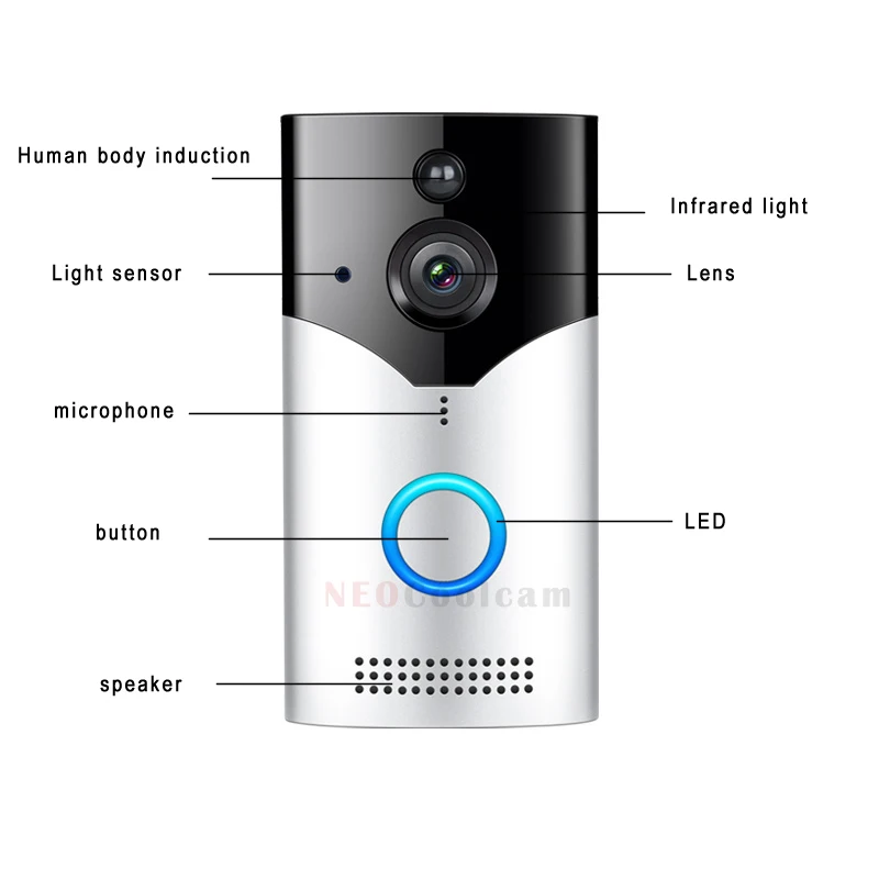 Смарт-видеодомофон NEOCoolcam 2 Мп с Wi-Fi, камера с дверным звонком и внутренней связью, с поддержкой приложения Tuya Smart Life и пассивным ИК датчиком движения, двухсторонней связью