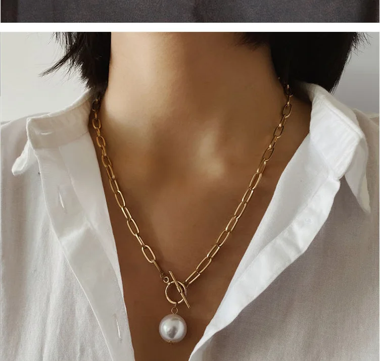 Готический рок чокер с жемчугом подвеской ожерелье для женщин Свадьба панк большой шарик массивный золотой цвет длинная цепочка ожерелье ювелирные изделия