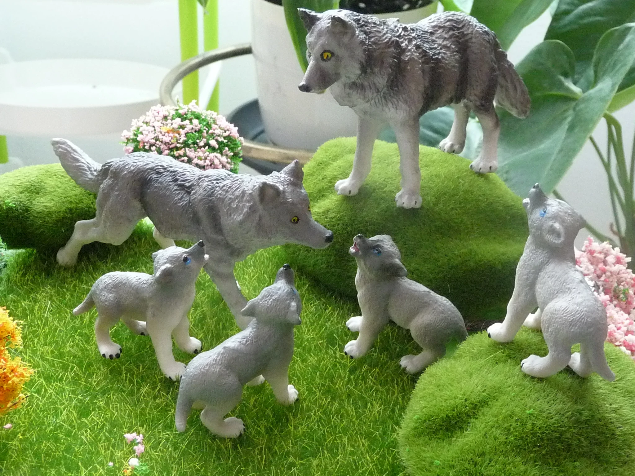 Экшн-фигурки волка из ПВХ, маленького размера, коллекционные игрушки, фигурки диких животных, Детские когнитивные игрушки, подарок для детей