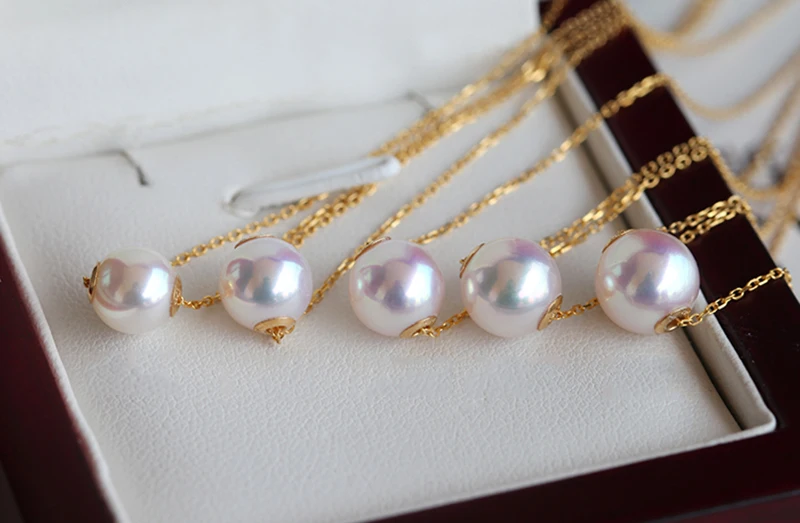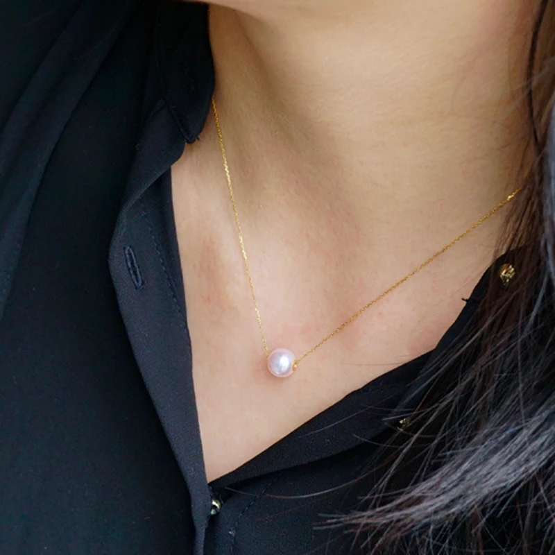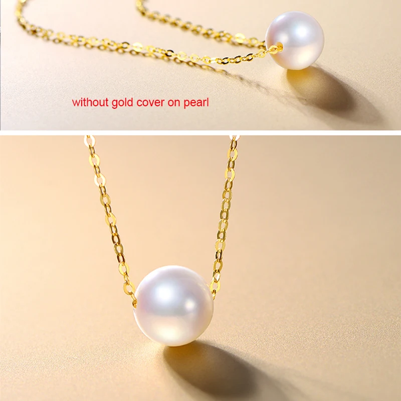 Название продукта Свадебное Настоящее 18k ожерелье из чистого золота, белый круглый натуральный пресноводный жемчуг кулон ожерелье годовщина подарок хорошее качествоЖемчуг Форма