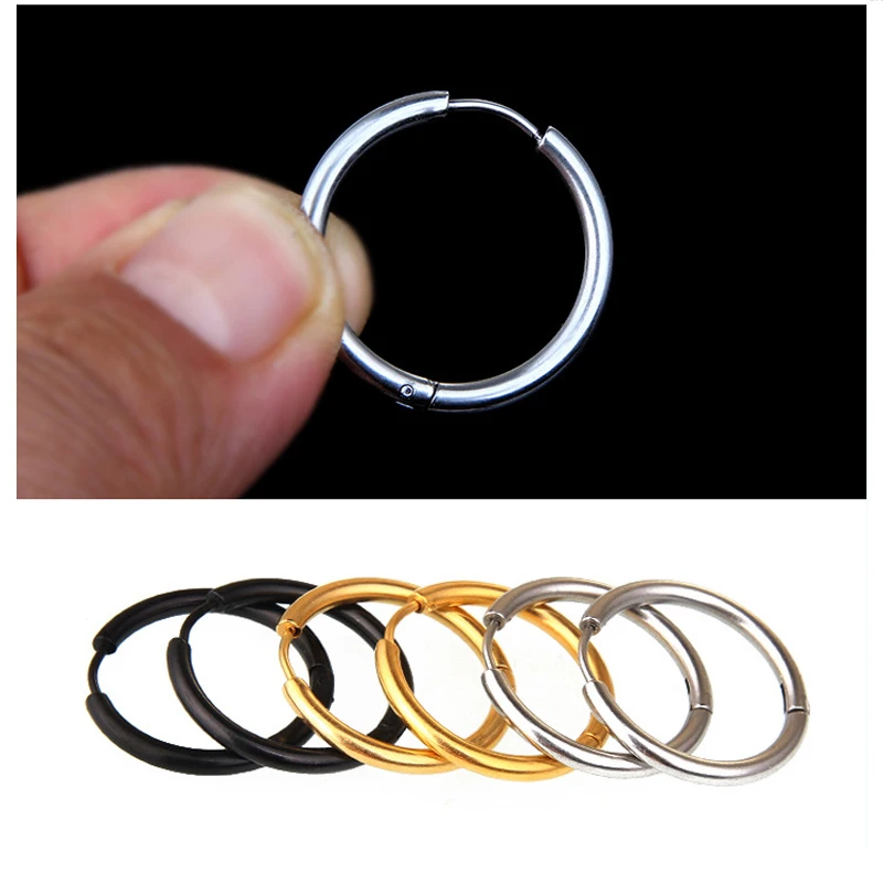 2 шт.компл., маленькие серьги-кольца из нержавеющей стали для женщин, мужчин, золотые, черные, круглые серьги, спиральное кольцо для пирсинга, 10 мм