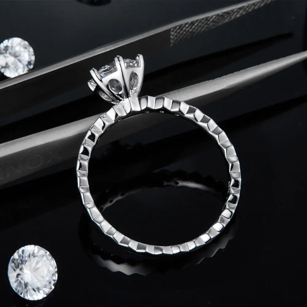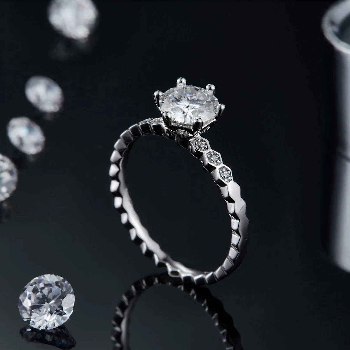 Кольцо женское из серебра 925 пробы с муассанитом, 6 зубцов