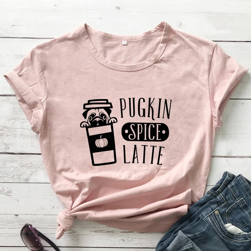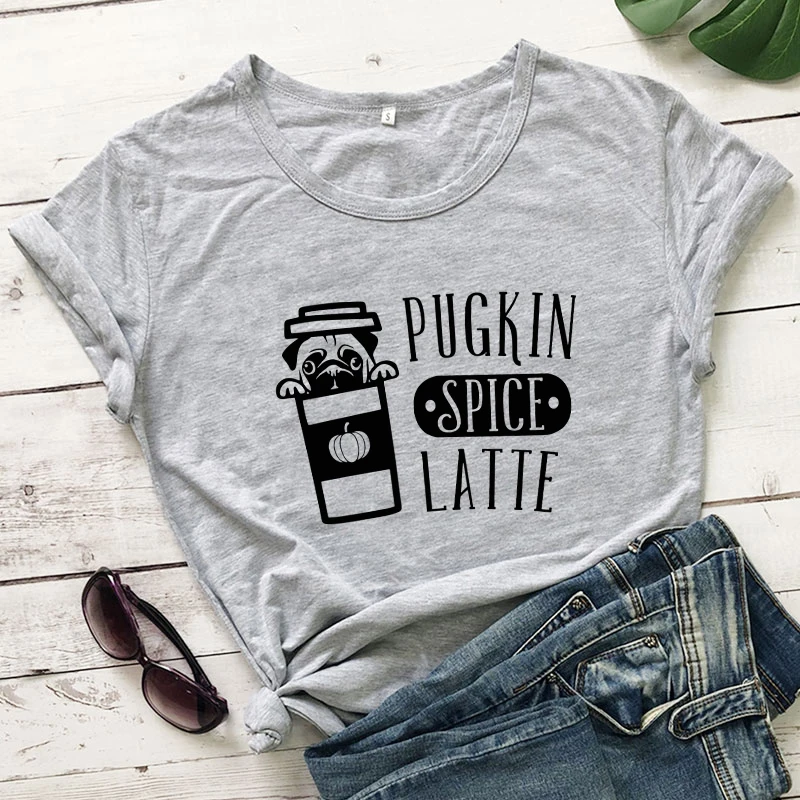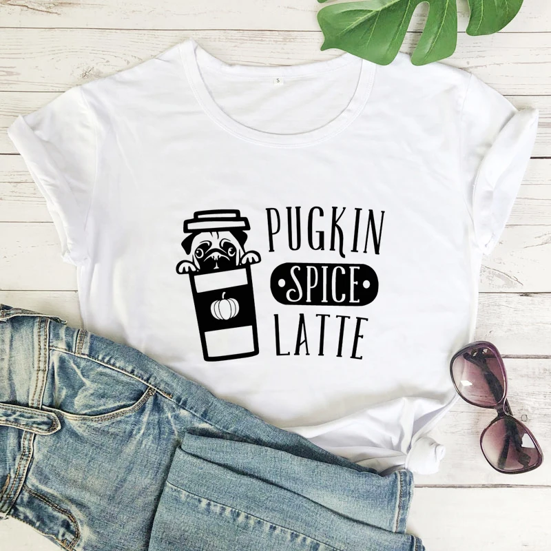 Футболка Pugkin с принтом специй и латте, Милая женская футболка с графическим рисунком на День Благодарения, женская футболка с забавной собакой, праздничный подарок, футболка, Прямая поставка