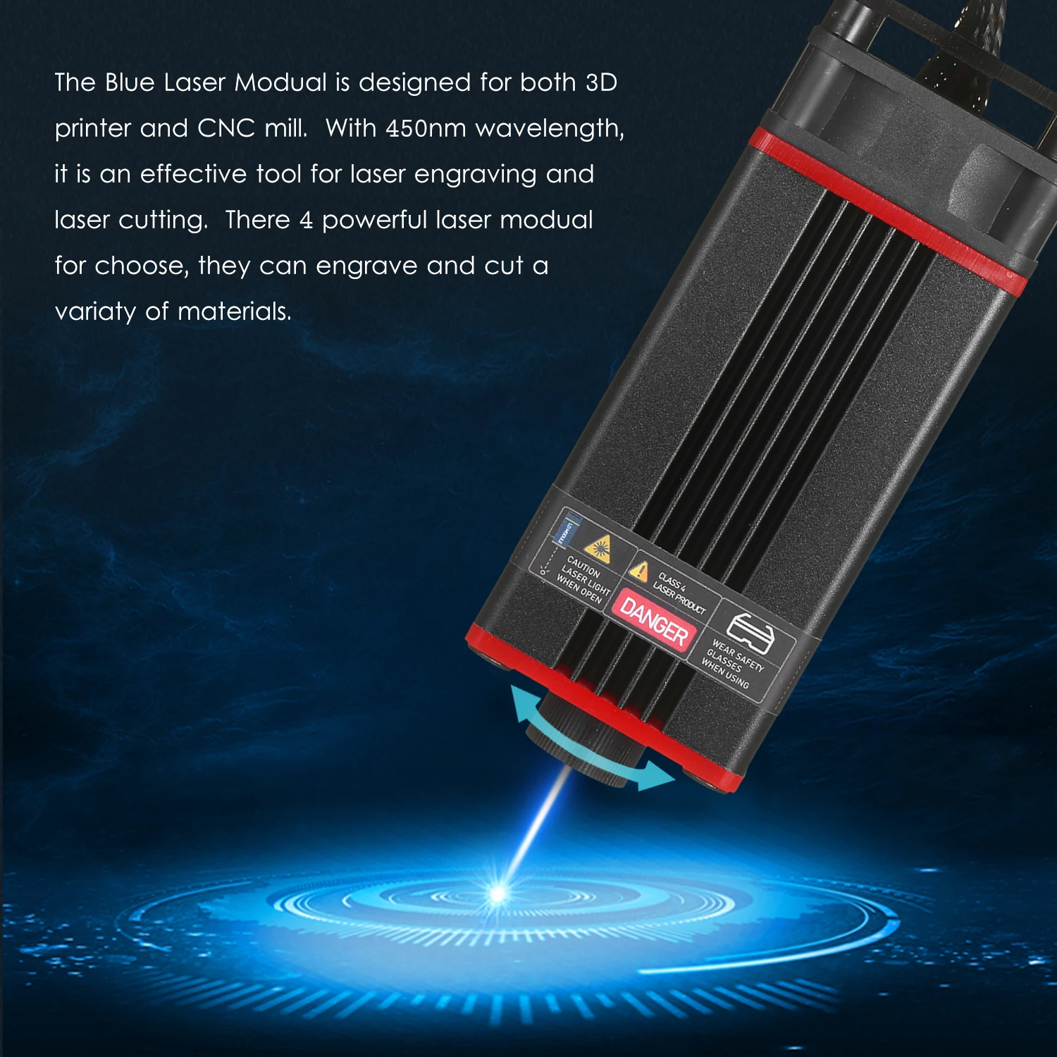 Усовершенствованный синий лазерный модуль с более низкой потерей и высокой точностью предназначен как для 3D-принтера, так и для станка с ЧПУ. С длиной волны 450нм, это эффективный инструмент для лазерной гравировки и лазерной резки. Есть 4 мощных лазера modual на выбор, они могут гравировать и резать различные материалы. Особенности: Усовершенствованный синий лазерный модуль --- профессиональная лазерная головка имеет обновление с более низкой потерей и высокой точностью и поддерживает высокую скорость и высокую стабильность, в то же время продлевает время обслуживания лазера modual. Ярко-сине-фиолетовый светильник, легко устанавливается при гравировке. Регулируемая фокусировка --- Регулируемая лазерная головка, легко настраивается, более гибкое использование и обеспечивает гравировку с хорошим качеством и высокой эффективностью. Легко собрать безопасное использование --- маленький и компактный, удобный и простой в установке. Поставляются с защитными очками, обеспечивают безопасную работу. Резьба по 30 Вт материал-дерево, некоторые пластмассы, бумага, бамбук, рог, тонкая кожа (кошелек), резиновый штамп, зуб, ПУ, печатная бумага, ПВХ, рог, раковина краба, омар, мамонт, слоновая кость, корень липы, смола, Линзы для очков, металлическая окрашенная поверхность, те виды легковоспламеняющегося материала s. И цветная керамика, цветной алюминий, галька и т. д. часть из нержавеющей стали, анодированная, темное гальваническое покрытие, плавательная краска, краска для выпечки, алюминий для переноса древесины. Банки для кокса, мобильный телефон и т. Д. 30 Вт Режущий материал-в пределах 3 мм плотная бумага, кожа, нетканые материалы, флокированные ткани, Дерево самолета, наклейки и т. Д. Непрозрачный пластиковый лист в пределах 2 мм черный акриловый лист в пределах 2 мм Характеристики: Цвет: черный/красный (на выбор) Мощность лазера: 5500 МВт/10 Вт/20 Вт/30 Вт (опционально) Материал: алюминиевый сплав + пластик Светильник Цвет: синий с защитой от УФ Длина волны: 450нм Форма Facula: пунктиформа, регулируемый фокус (30 Вт не может регулировать фокусировку) Входное напряжение: 12 В 2 А