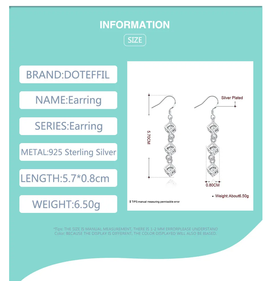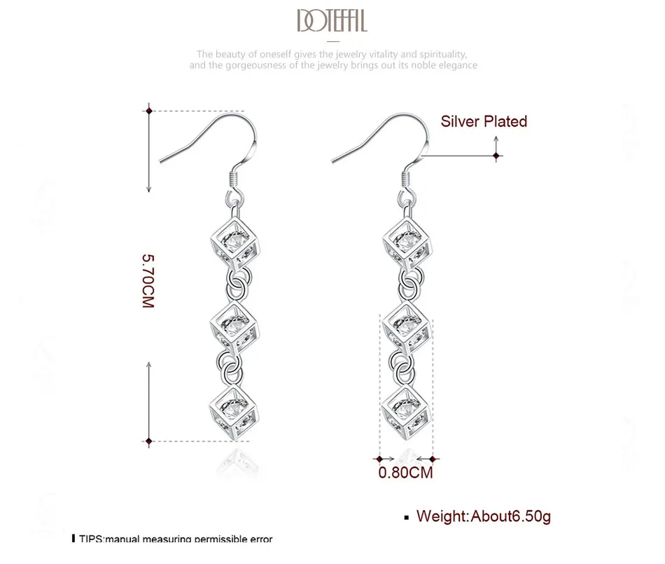 DOTEFFIL, Стерлинговое Серебро 925 пробы, Baishige AAA, циркониевые Висячие серьги, очаровательные женские ювелирные изделия, модные, свадебные, Помолвочные, вечерние, подарок