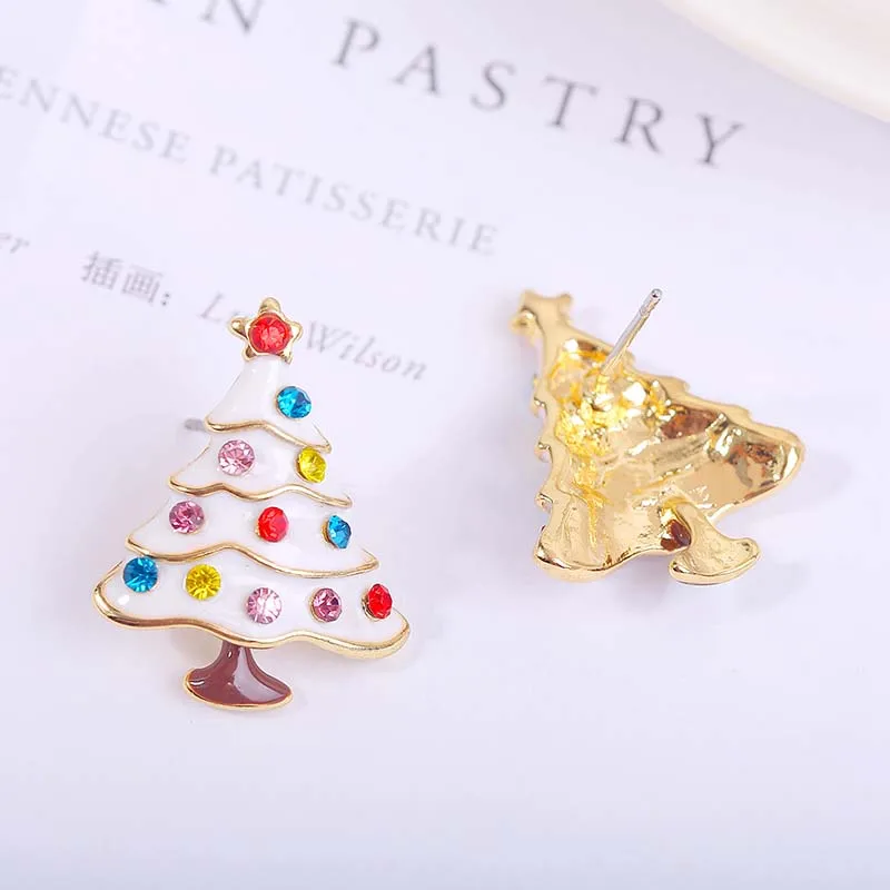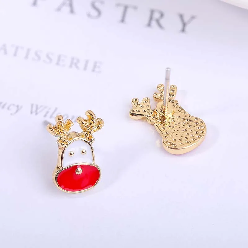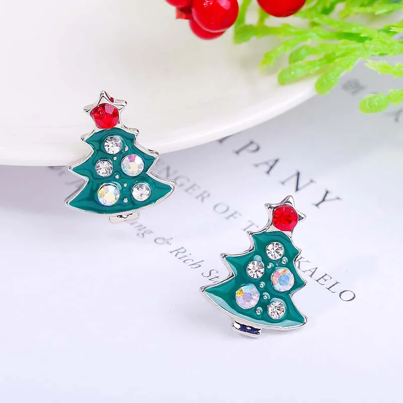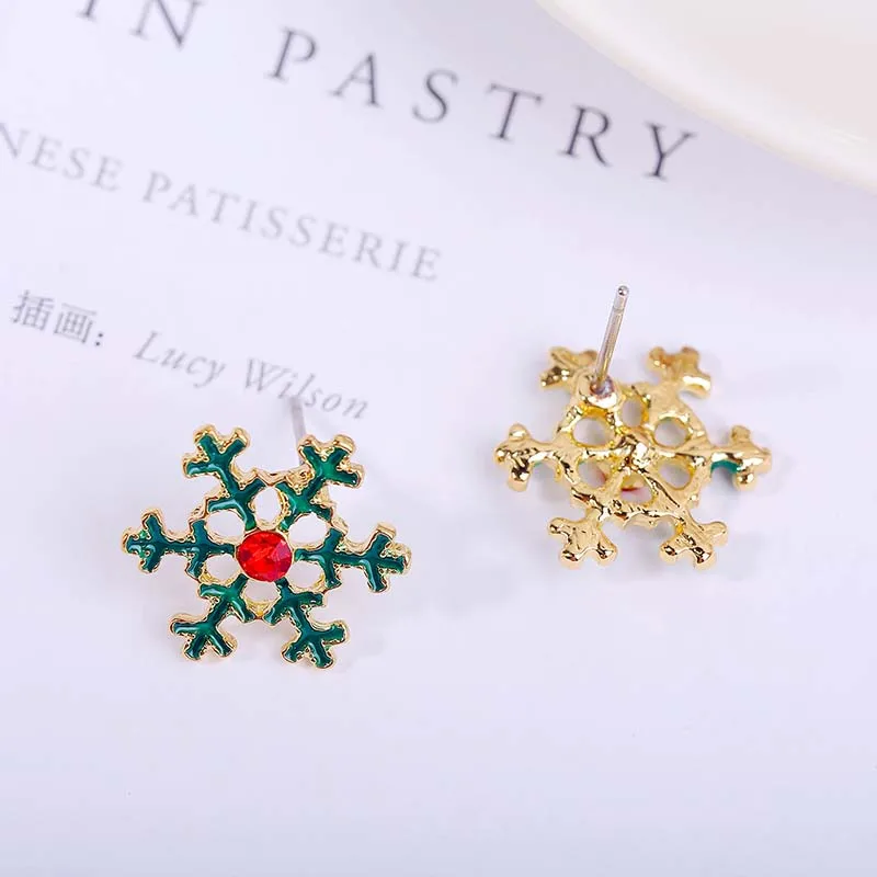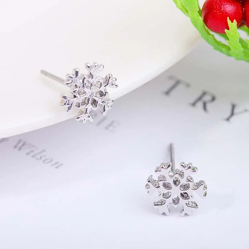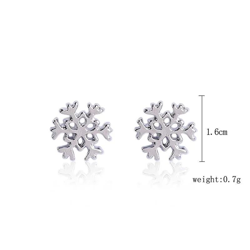 Серьги-гвоздики в виде деда мороза, серебристого цвета, маленькие снежинки, Мультяшные рождественские аксессуары для девочек, рождественские подарки