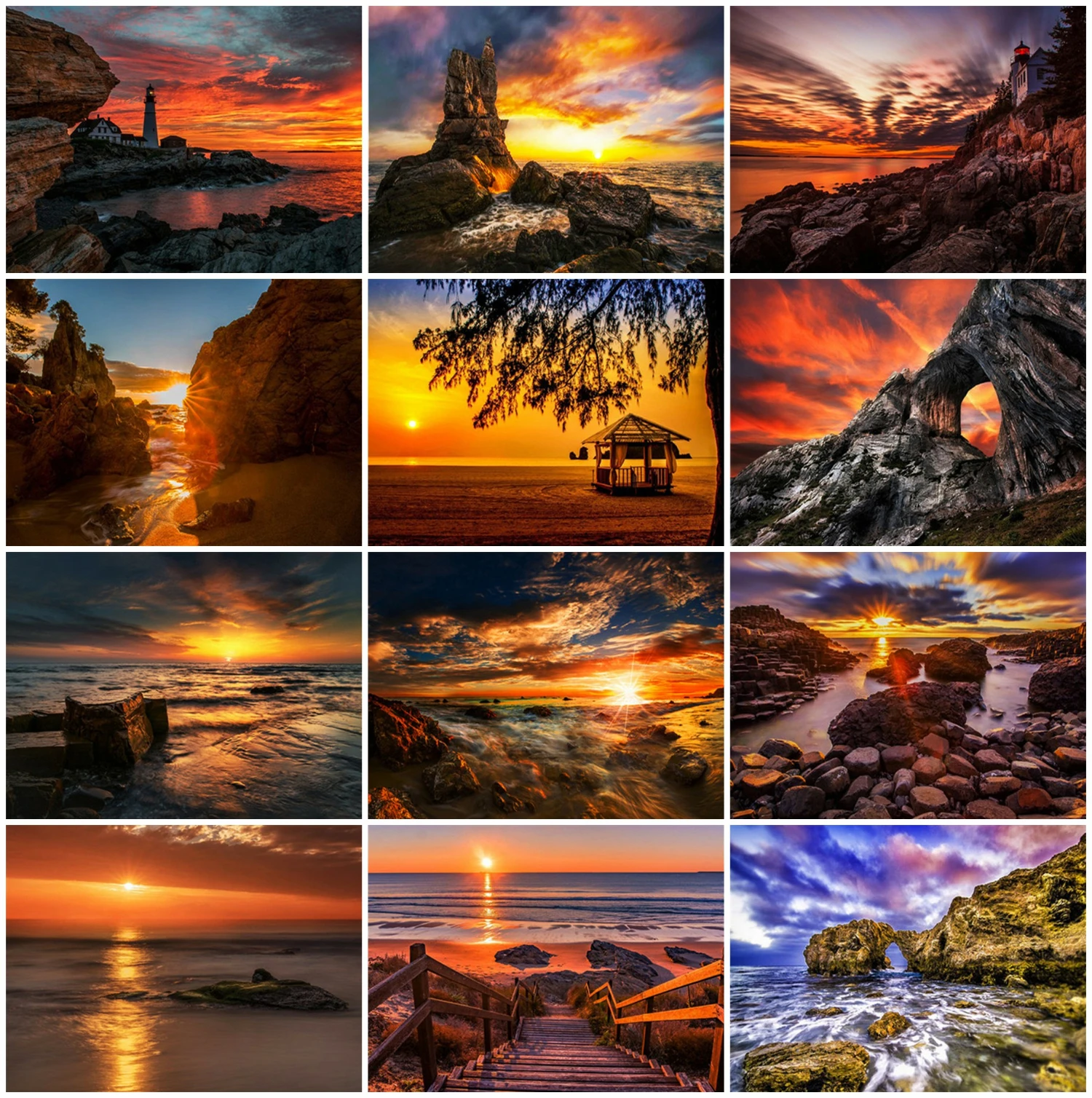 HUACAN Алмазная вышивка заход солнца подарок ручной работы Алмазная мозаика пейзаж Приморский алмазная вышивка по фото домашнего декора