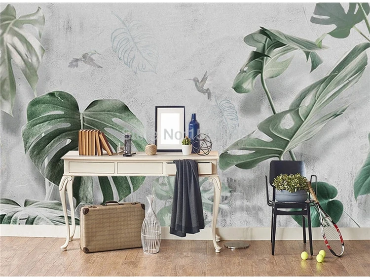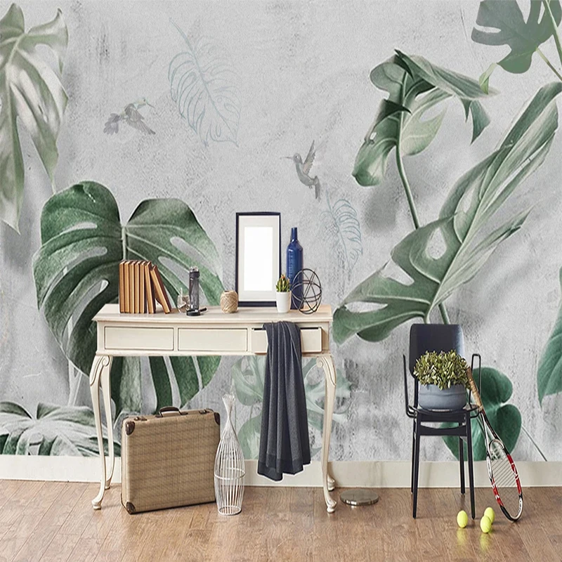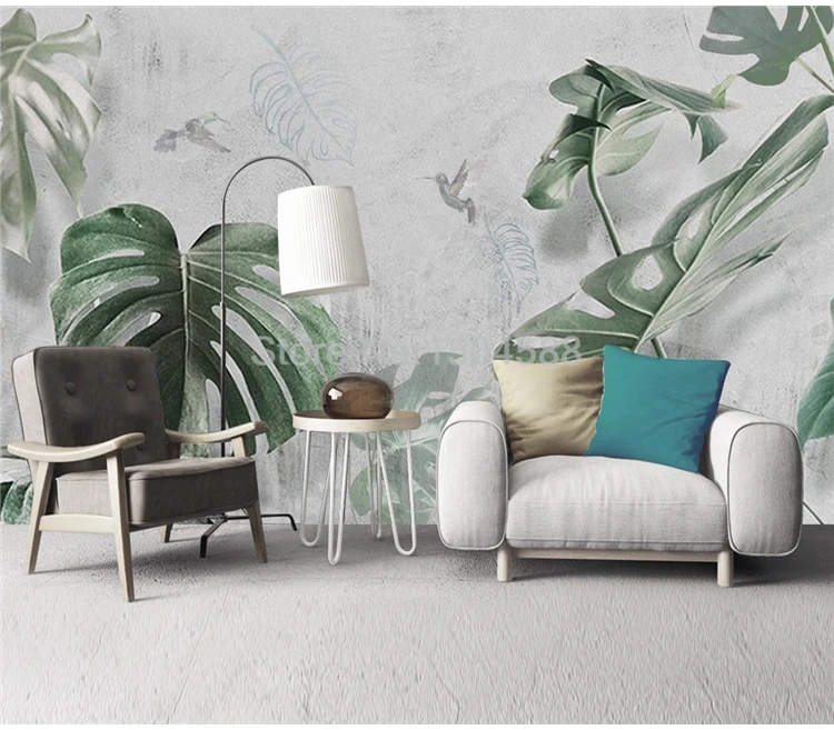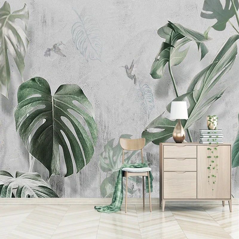 Пользовательские фото обои 3D цементные стены тропические растения лист росписи гостиной ТВ диван столовая искусство домашний декор фон росписи