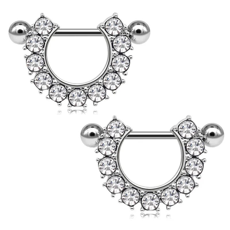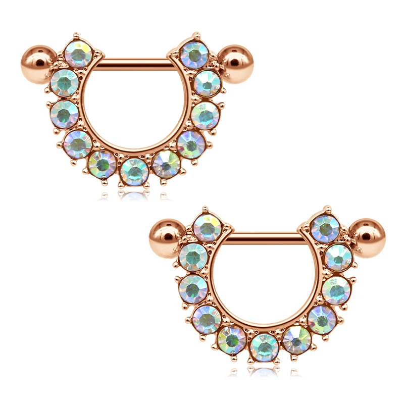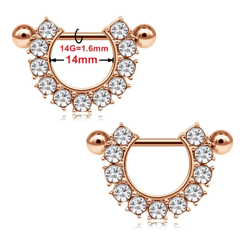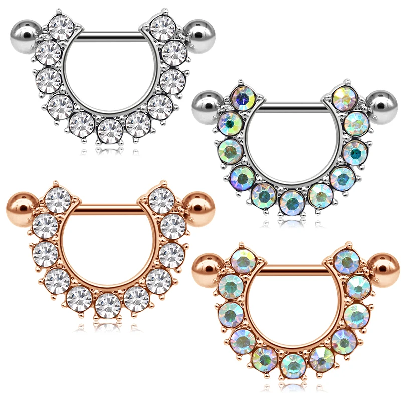 14 г кольцо для сосков AB цвет циркония CZ пронзили соски из нержавеющей стали прямые через штанги для девочек