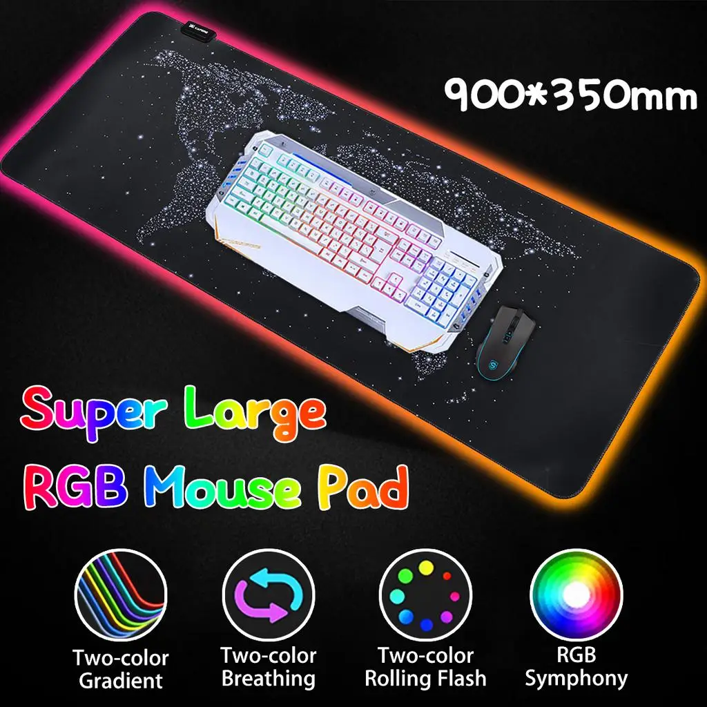 Большой игровой коврик для мыши Saber Fate Anime RGB 900x40 0300X600 со светодиодной подсветкой, размер XXL, Игровая клавиатура, коврик для мыши с фиксируемой кромкой, Настольный коврик