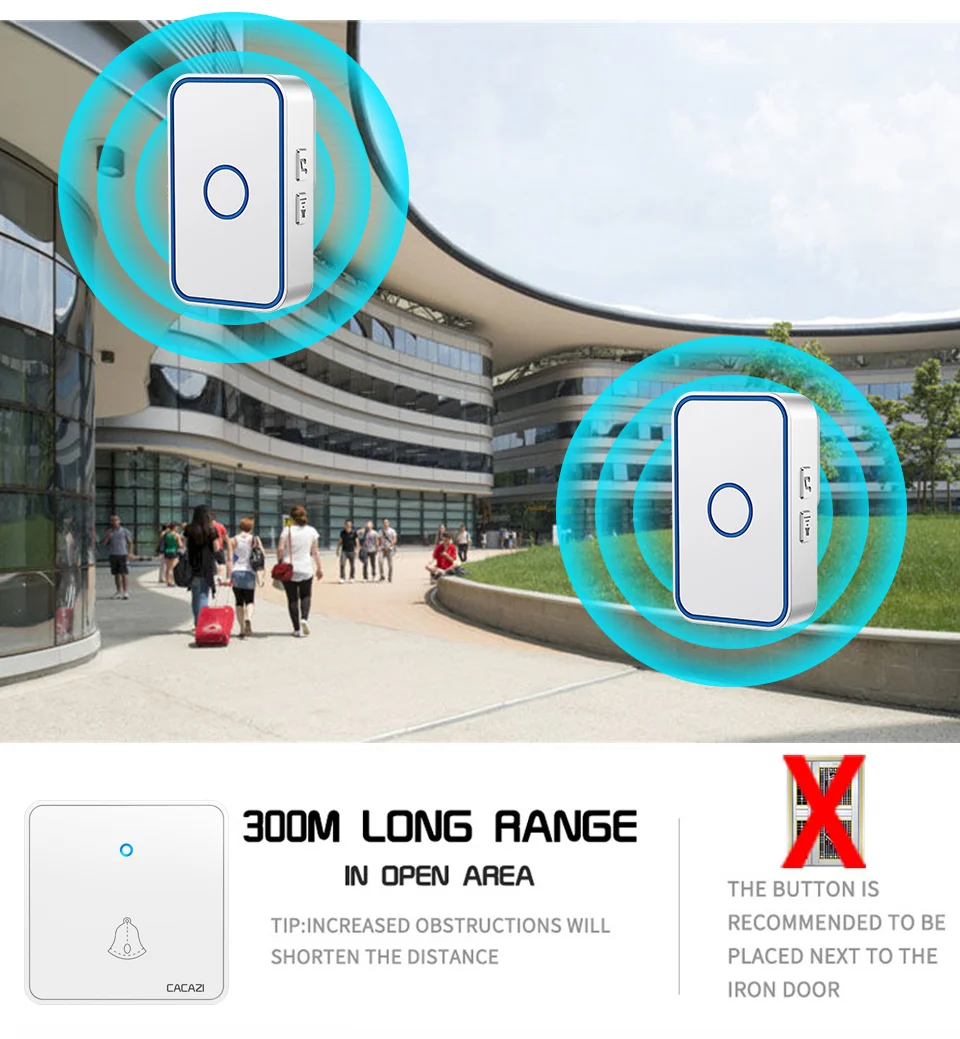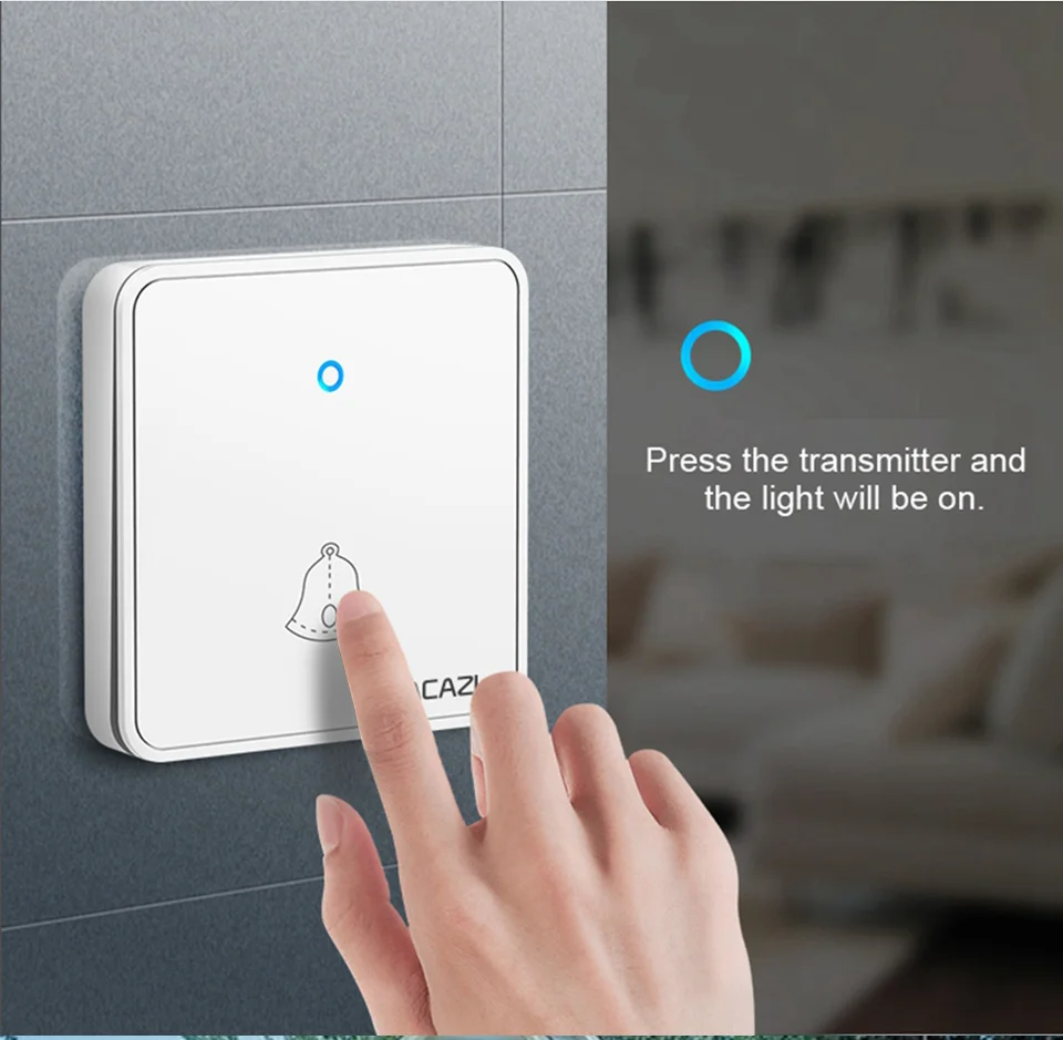 Умный беспроводной дверной звонок CACAZI, водонепроницаемый, 60 звонков, батарея CR2032, домашний мигающий дверной звонок, вилка США, ЕС, Великобритании, 1 кнопка, 4 приемника