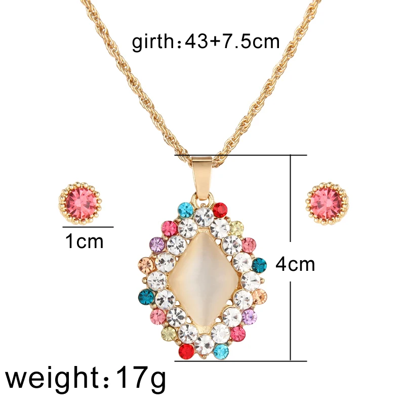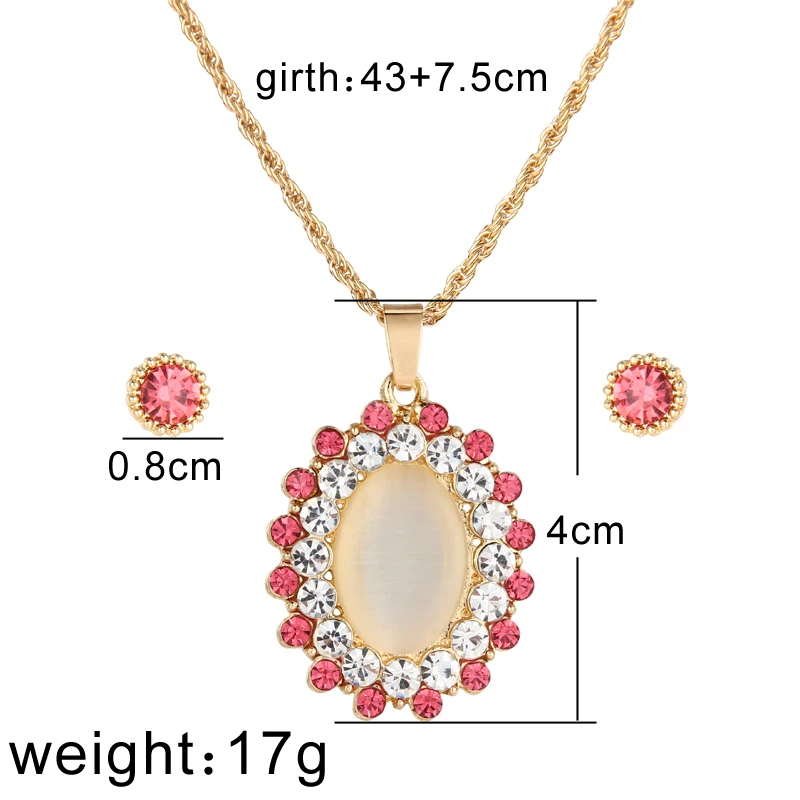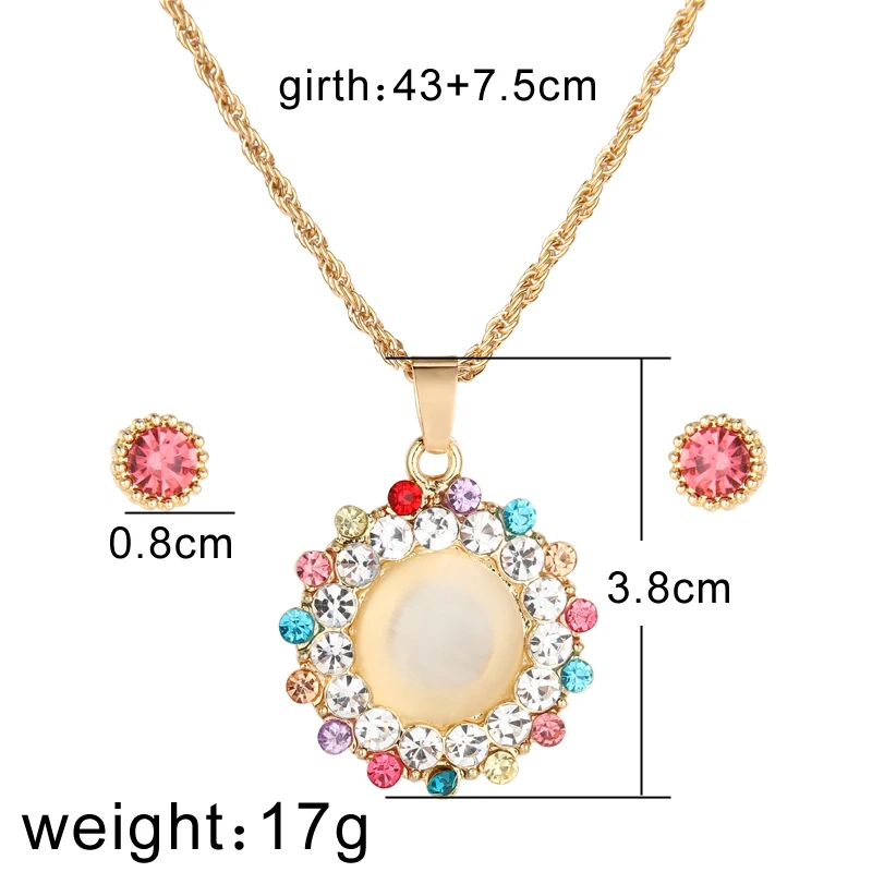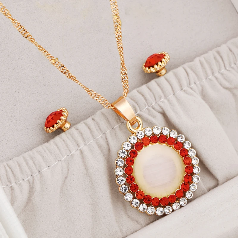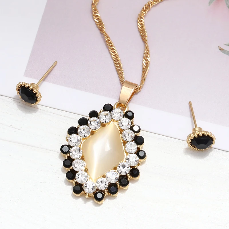 Набор из ожерелья и серёг, с подвеской из австрийский Кристал из опала камня, золотистого цвета, набор украшений для женщин