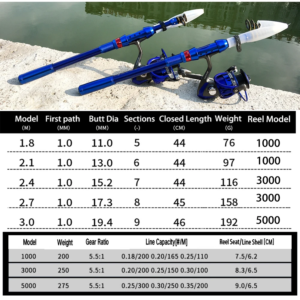 Рыболовная модель с телескопической удочкой и катушкой спиннинга 1,8 м, 2,1 м, 2,4 м, 2,7 м, 3,0 м