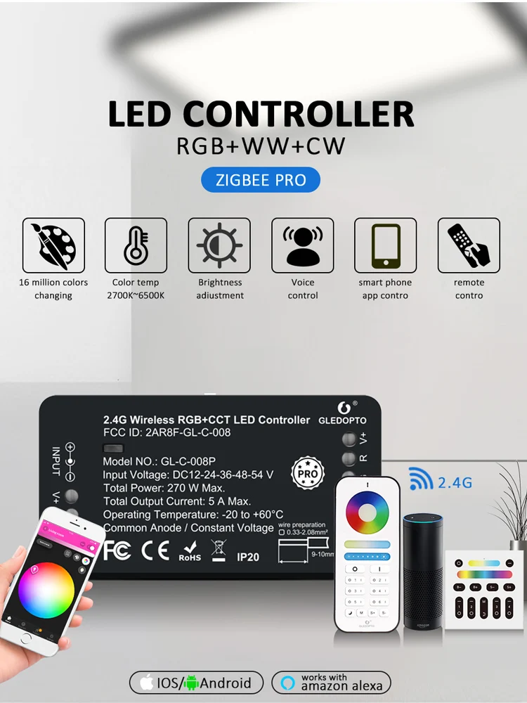 1. Контроллеры Zigbee работают с шлюзами Zigbee, такими как Amazon ECHO Plus, H * U * E, O * sr * am,SmartThings, И т. Д. (есть некоторые проблемы с совместимостью с ИК * е * а в настоящее время) 2. Контроллеры Zigbee работают с H * ome K *-I-T :https://www.reddit.com/r/Gledopto/comments/amp3v9/i_wrote_a_little_guide_on_getting_the_gledopto/ 3. Синхронизируйте свет с фильмами, музыкой и играми, наслаждайтесь эффектом освещения, который синхронизируется с графикой изображения немедленно, и испытайте более тонкий эффект освещения атмосферы.Как синхронизировать? Пожалуйста, перейдите на этот веб-сайт: http://www.screenbloom.com/Синхронизация показывает результаты: https://youtu.be/zZjtJMy_774 Плюс контроллер работает с 6-зоны РФ Пульт дистанционного управления и настенный выключатель● Широкая совместимость.● RGB CCT Беспроводная Регулировка яркости.● 16 миллионов цветов на выбор.● Голосовое управление, управление приложением для смартфона. В & A или более подробную информацию, пожалуйста, перейдите к: https://www.reddit.com/r/Gledopto/