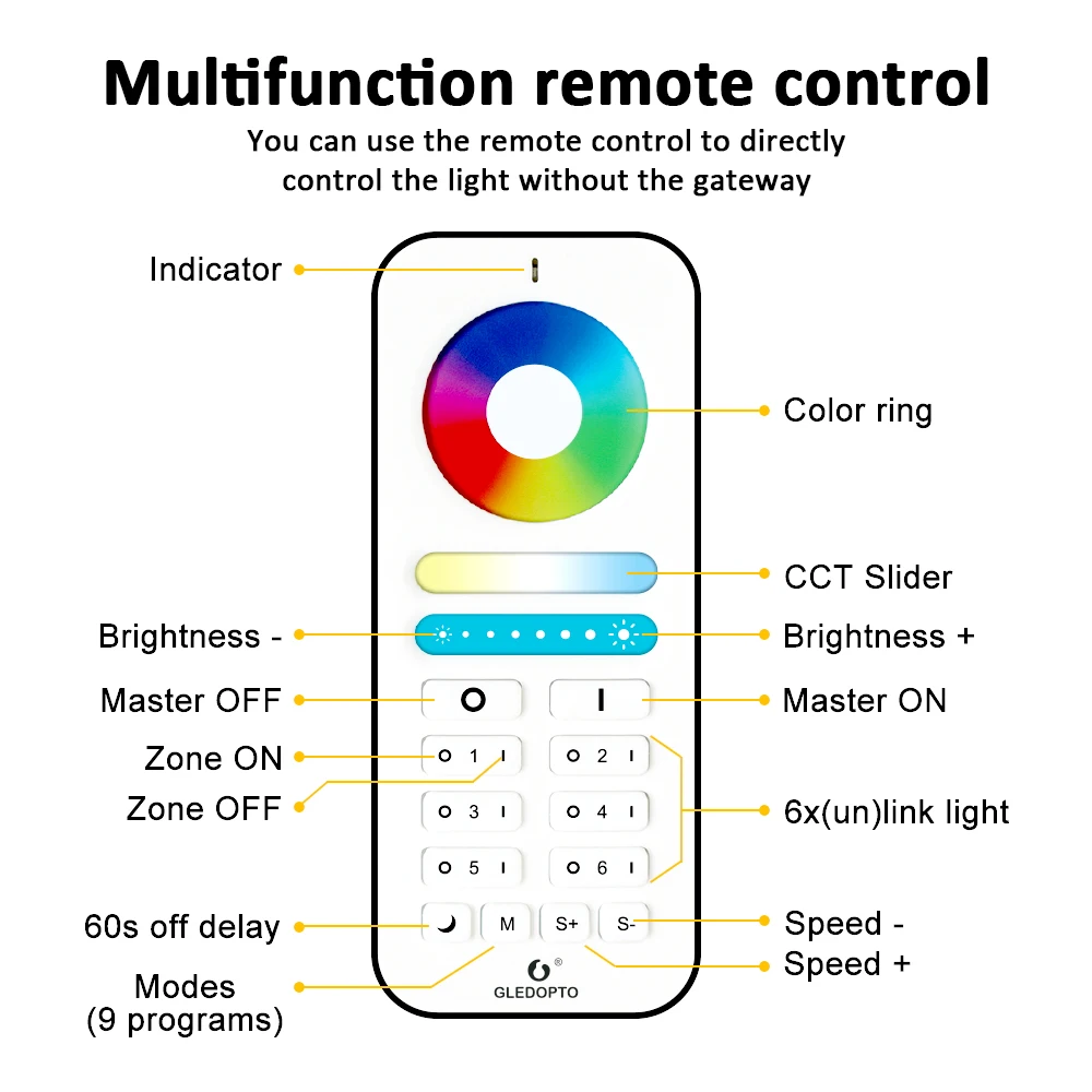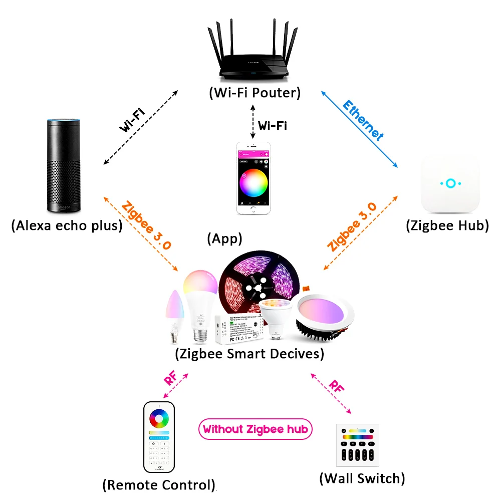 Пожалуйста, обратите внимание, что для наших устройств zigbee требуются соответствующие шлюзы, если у вас нет шлюза, купите один пульт дистанционного управления или переключитесь для работы с контроллером zigbee.Пульт дистанционного управления и переключатель работают только с контроллером ZigBee RGBCCT pro.*** RGBCCT Pro может использоваться для DIM/CCT/RGB/RGBW/RGBWW 5 видов светодиодной ленты
