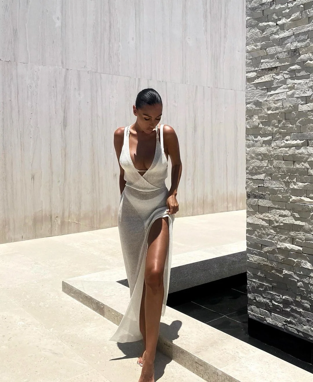 Женское длинное ажурное платье Townlike, Белое Облегающее Платье с открытой спиной для ночных клубов вечерние, лето 2020