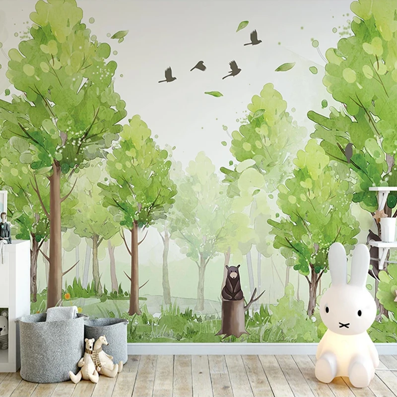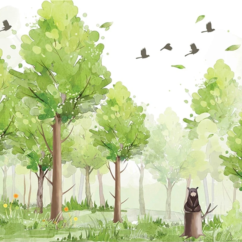 Фото на заказ, 3D Ручная роспись, лес, зеленое дерево, птица, роспи...