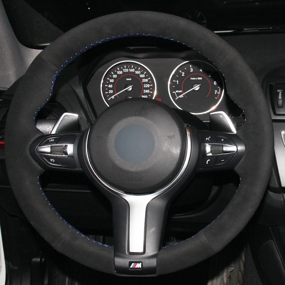 Чехол рулевого колеса автомобиля черная замша для BMW M Sport F30 F31 F34 X5 F15 M50d X6 F16 M50d F20 F21 M135i M140i F32 F33 F36 X1 F48