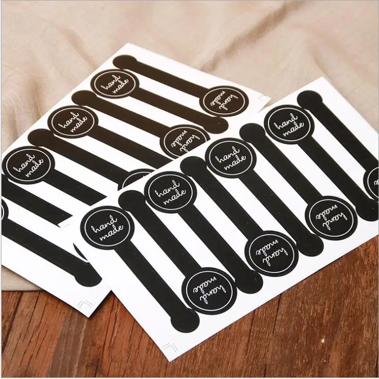 Клейкая Этикетка ручной работы для упаковки тортов, черная длинная стильная Крафтовая наклейка ручной работы для украшения выпечка в подарок сделай сам, 100 шт.
