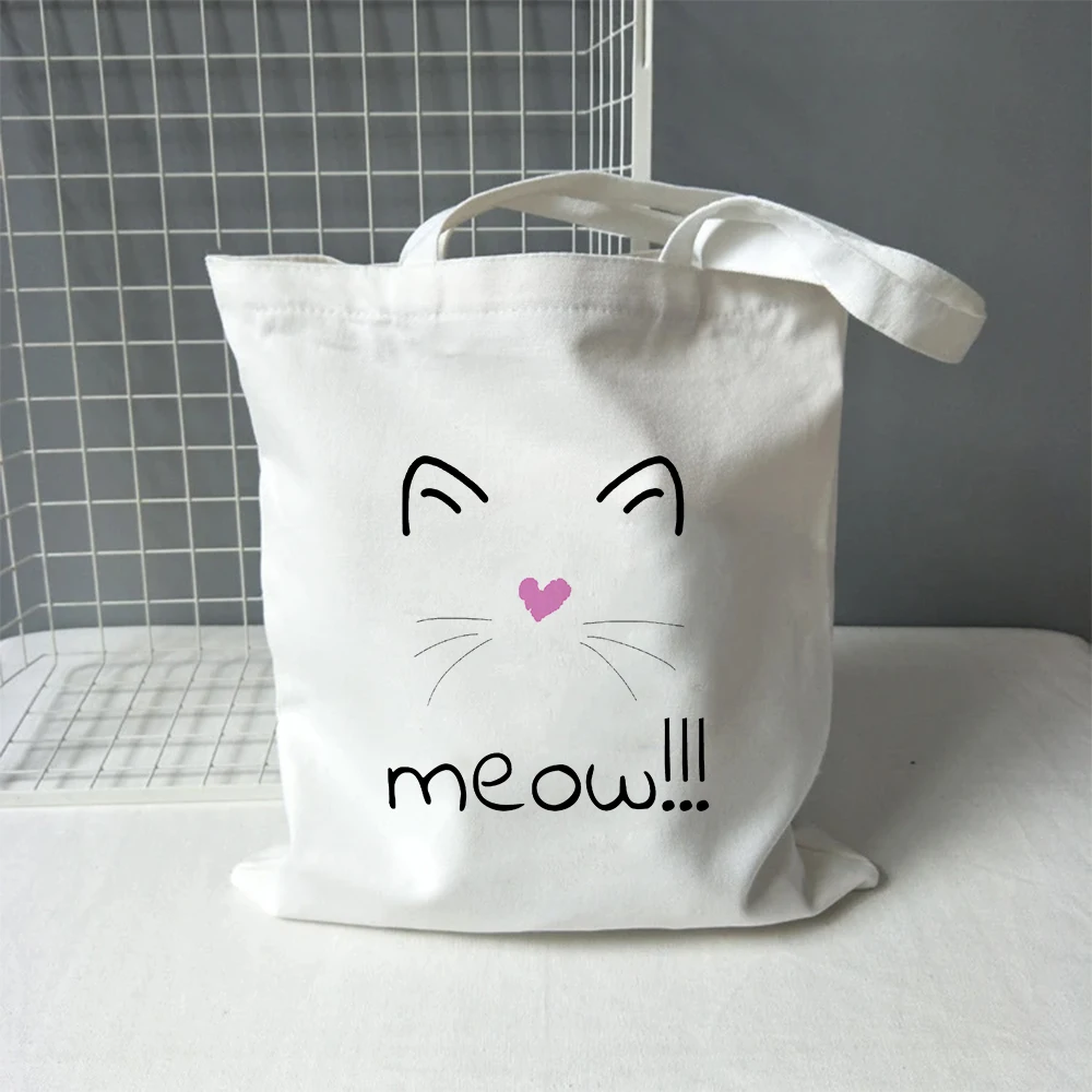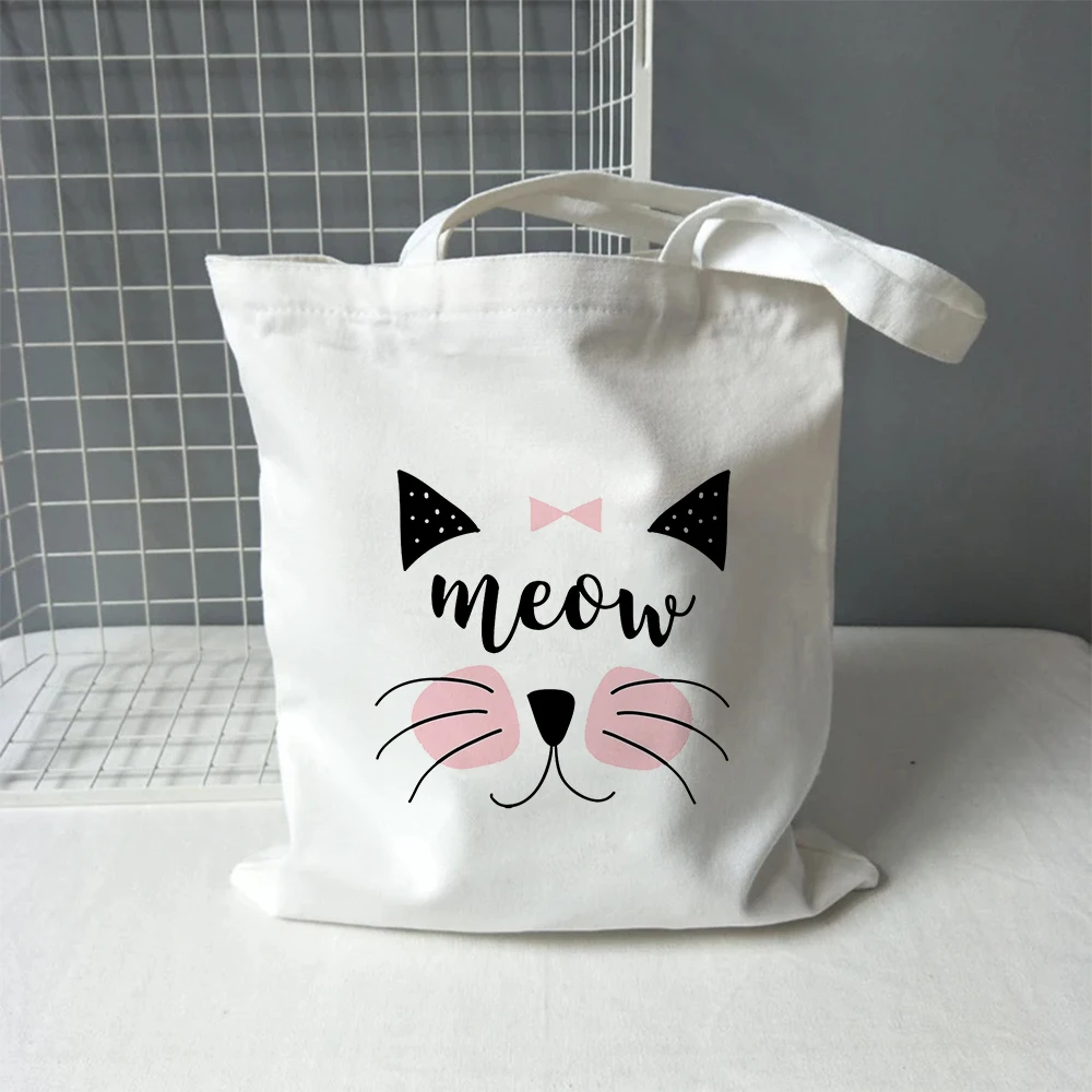 Милая Холщовая Сумка для покупок с кошкой, Женская вместительная сумка для хранения, многоразовая сумка-тоут через плечо для студентов, модная сумка для покупокМатериал: холст