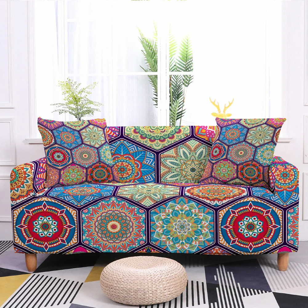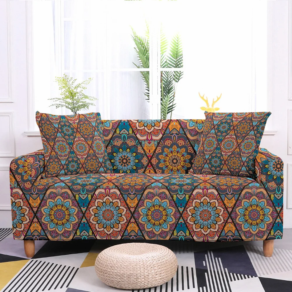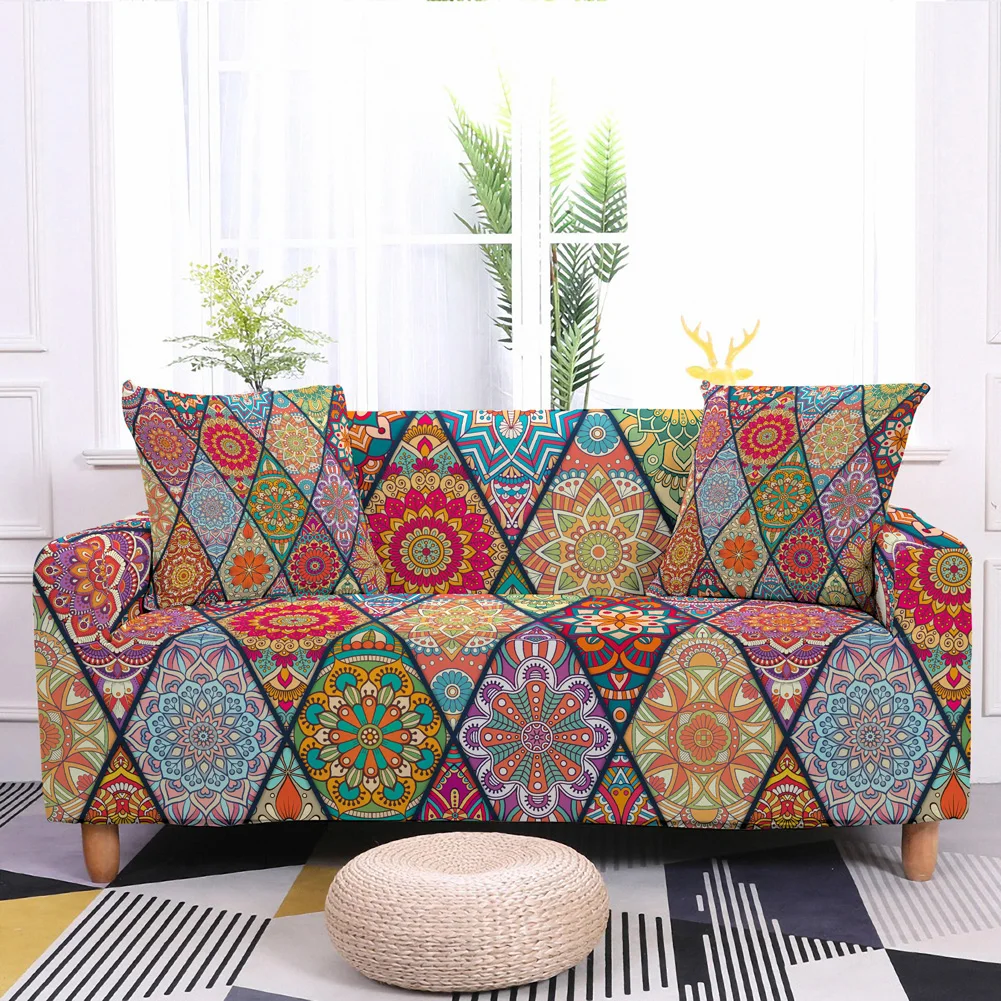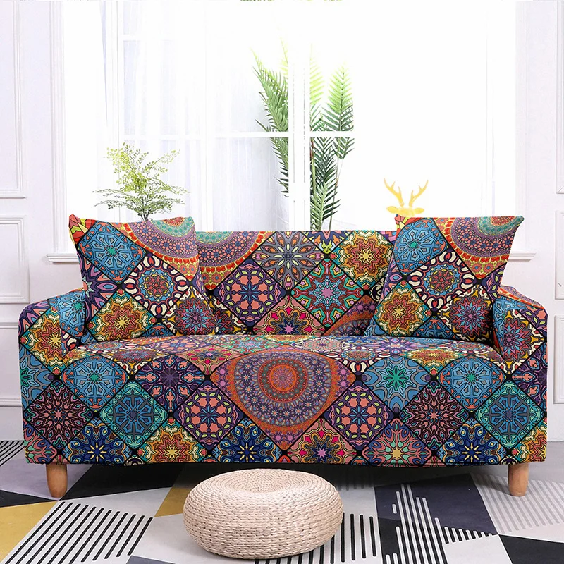 Чехол для дивана эластичный с геометрическим рисунком и цветами в богемном стиле, защитный чехол для дивана для гостиной, для одного, двух, L-образного дивана