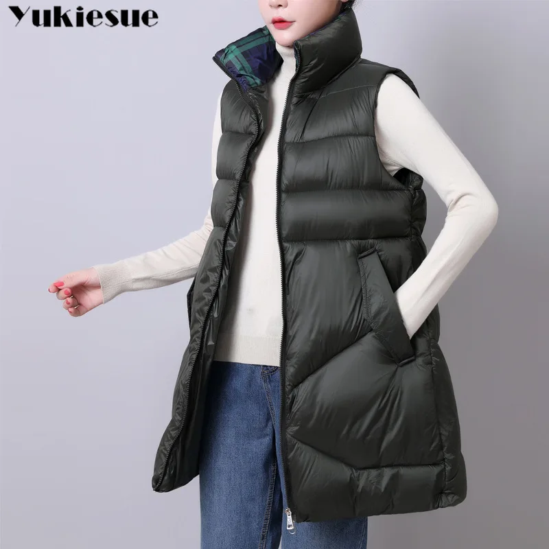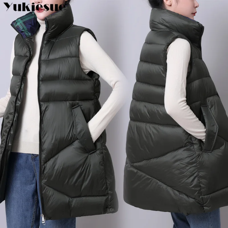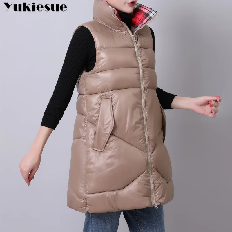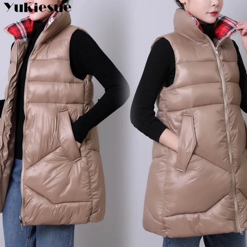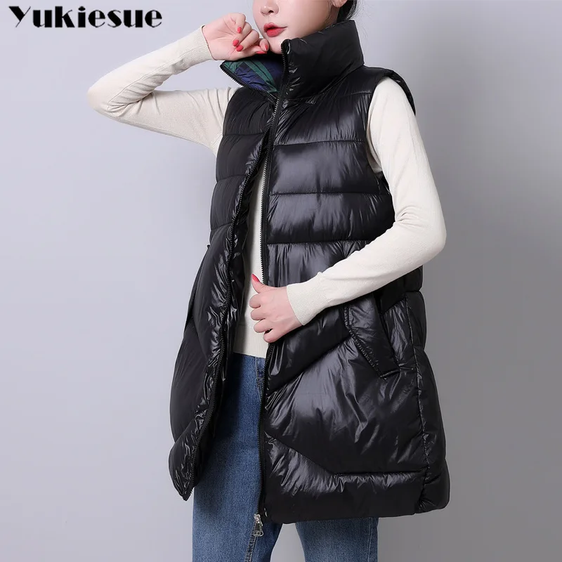 Осенне-зимний женский жилет с 2020 хлопковой подкладкой, теплый утепленный длинный женский жилет, Женская парка с воротником-стойкой, куртка, жилет, женский
