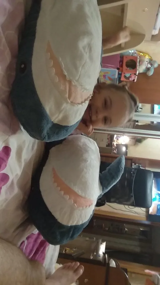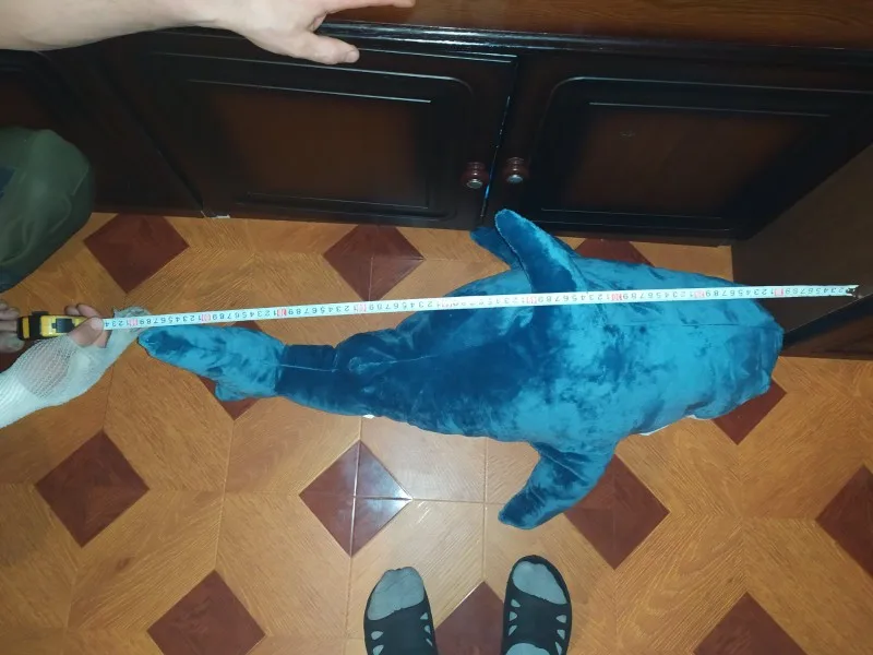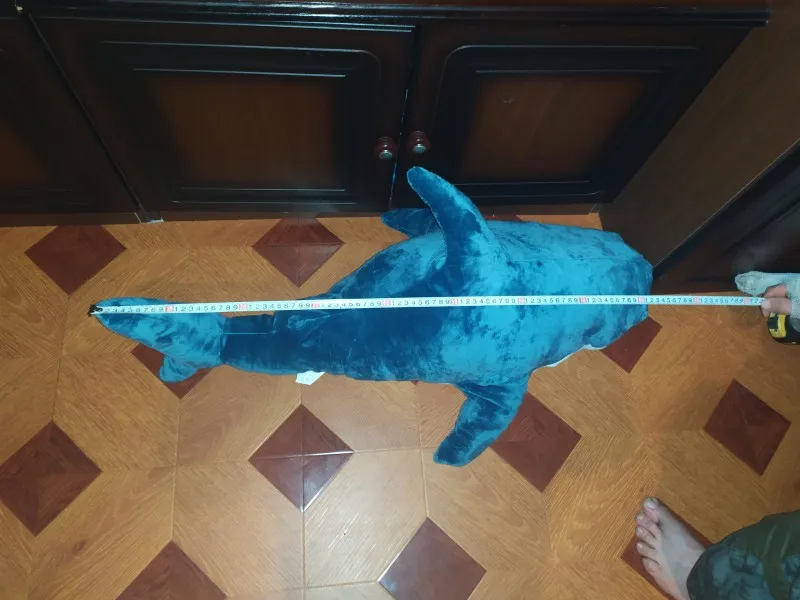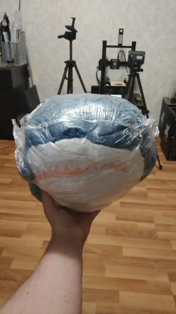 Доставка быстрая. В СПб за 3 дня курьером. Упаковка хорошая, но набивка акулы слабая. Как будто не хватает процентов 20 наполнителя...