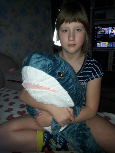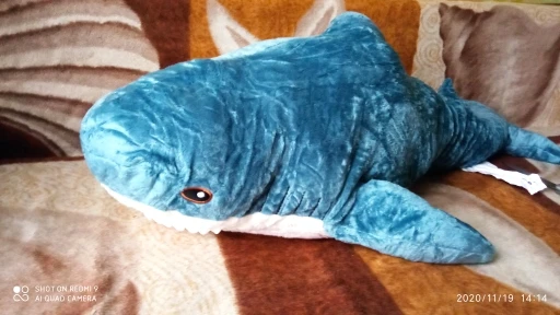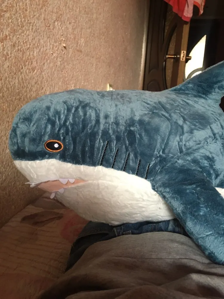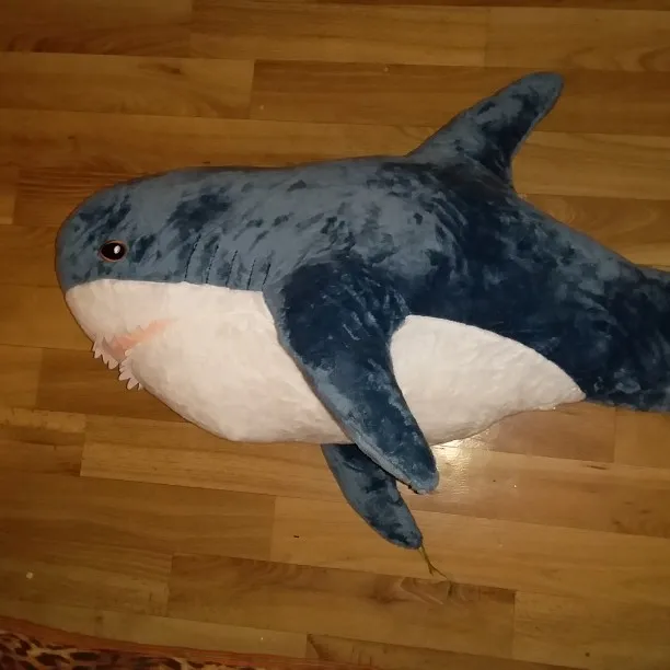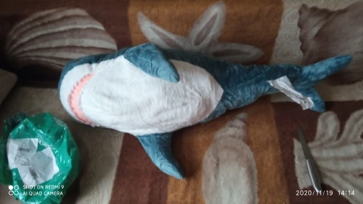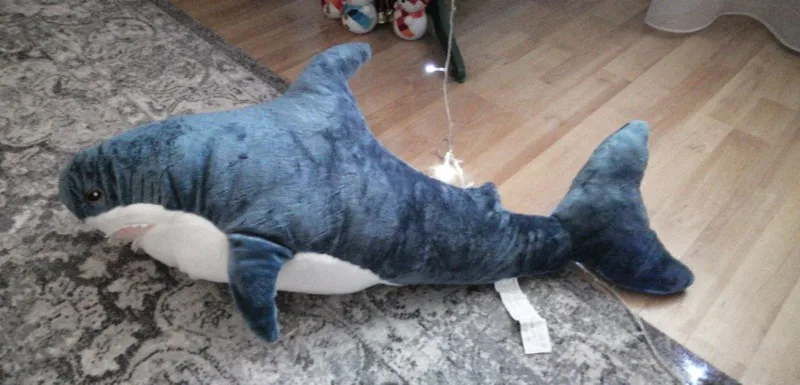 Посылка пришла быстро. Акула была утрамбована в такую маленькую посылку (не беспокойтесь - она расправится и всё будет хорошо). Полностью соответствует описанию и даже присутствует бирка IKEA. Однозначно советую к приобретению этот товар! Акул много не бывает!