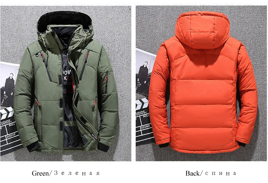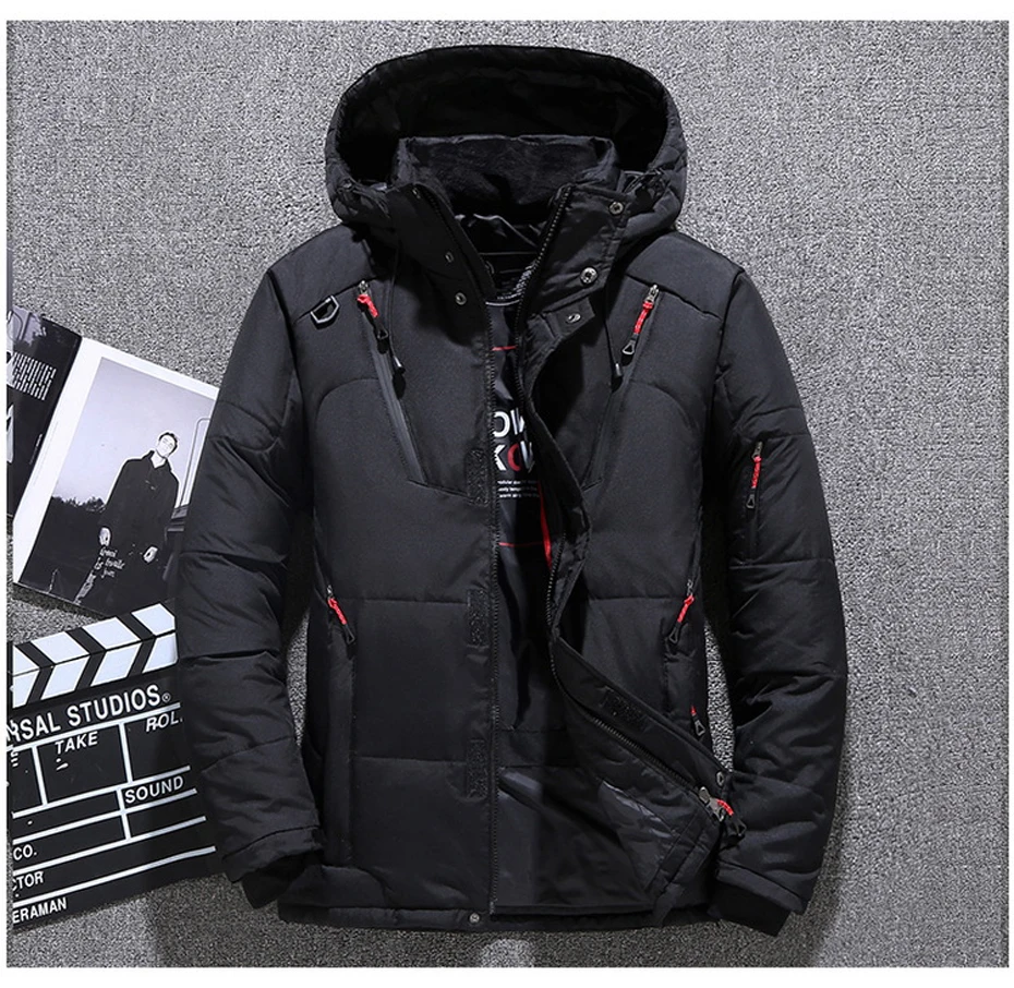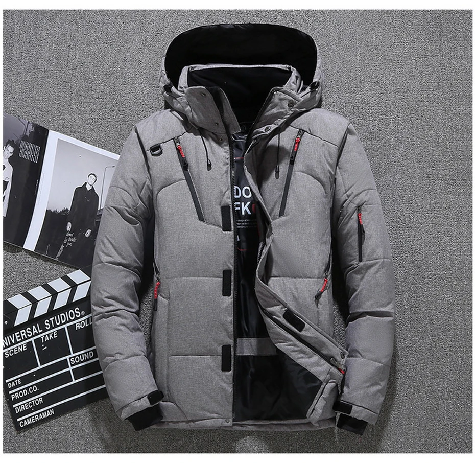 Мужская зимняя куртка на белом утином пуху, с капюшоном