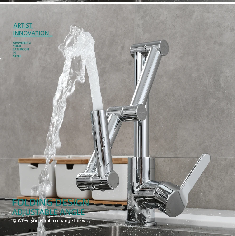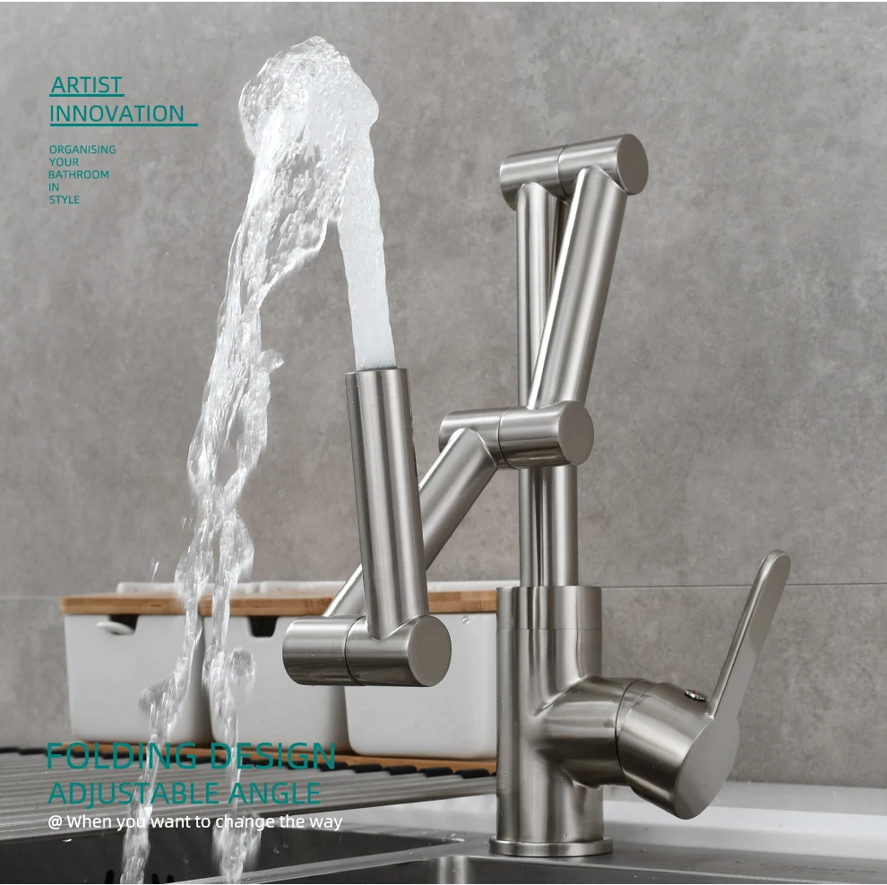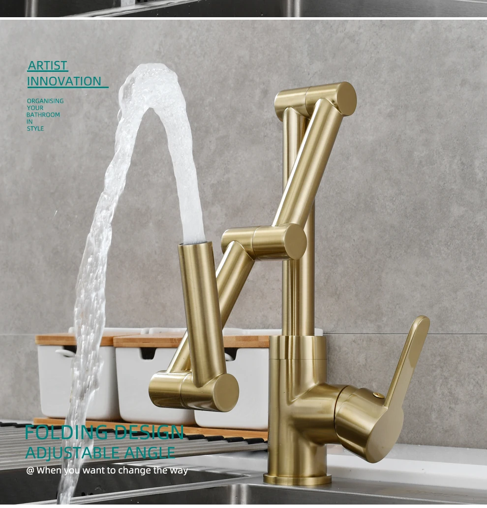 Латунный Смеситель для наполнения кастрюли, устанавливаемый на палубе, трехсекционный удлинитель, складной смеситель для кухни, тройной шарнир, поворотный рычаг для горячей и холодной воды