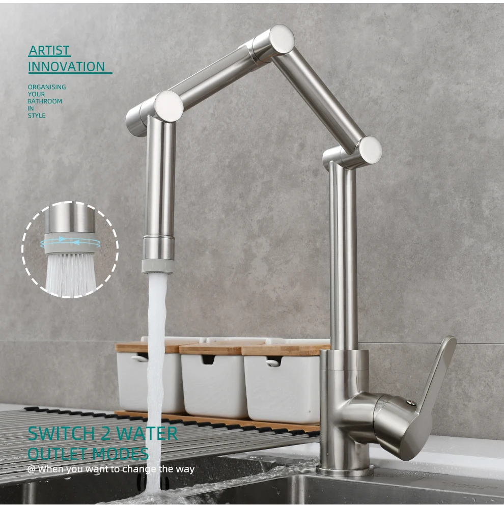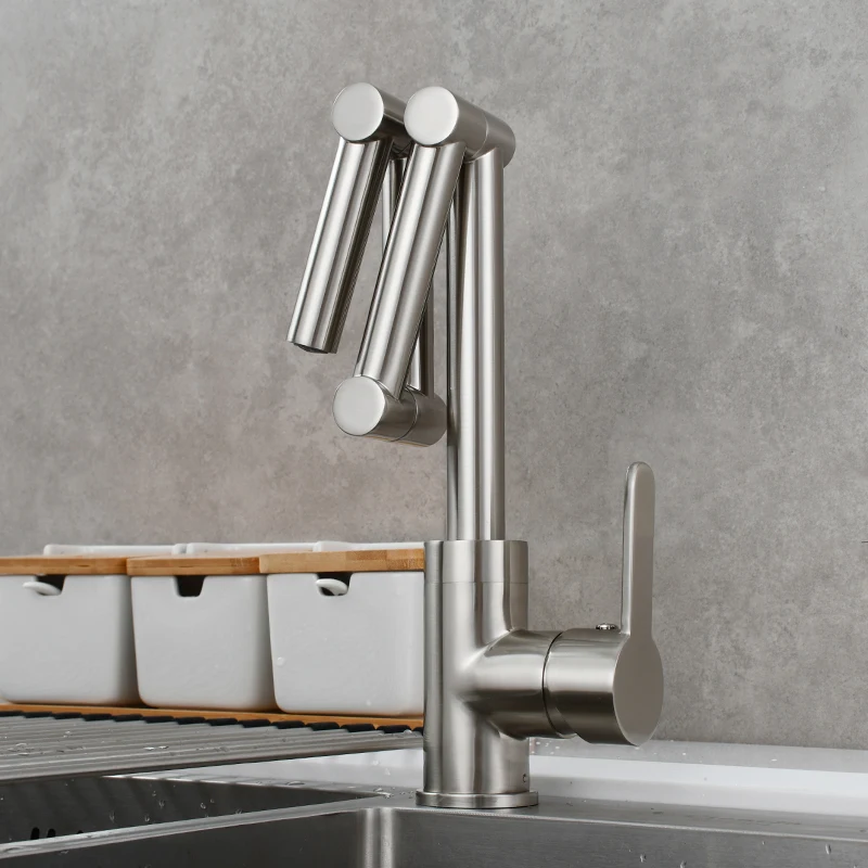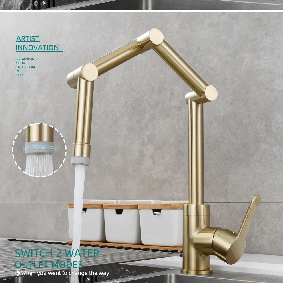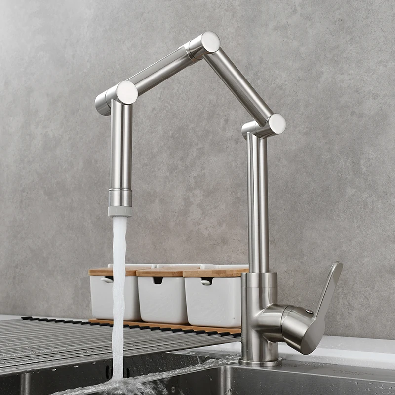 Латунный Смеситель для наполнения кастрюли, устанавливаемый на палубе, трехсекционный удлинитель, складной смеситель для кухни, тройной шарнир, поворотный рычаг для горячей и холодной воды